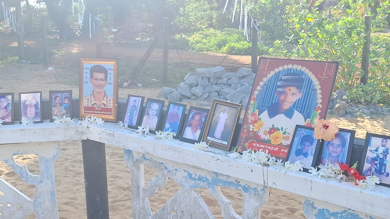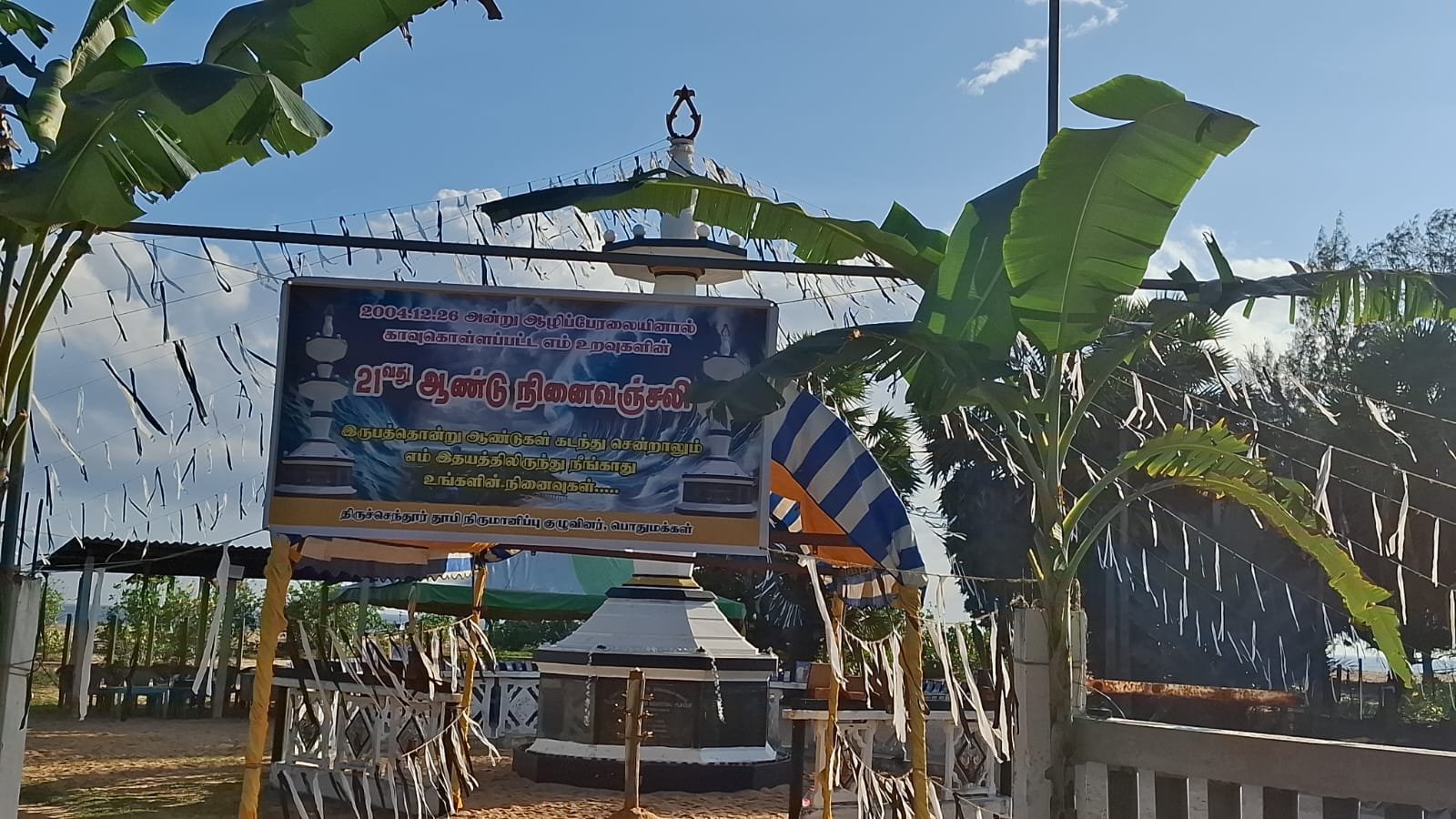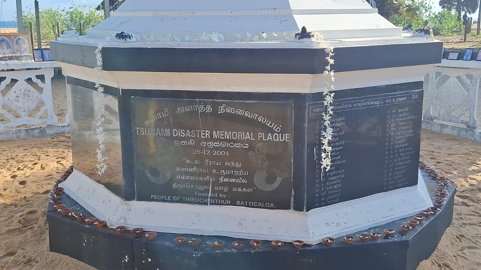 திருச்செந்தூர் சுனாமி நினைவு தூபியில் இறந்தவர்களின் புகைப்படங்கள் வைக்கப்பட்டு கண்ணீர் மல்க உறவினர்களின் ஆல் மலரஞ்சலி செலுத்தப்பட்டது டன் மதத்தலைவர்களினால் சமய பிரார்த்தனைகளும் இடம்பெற்றன