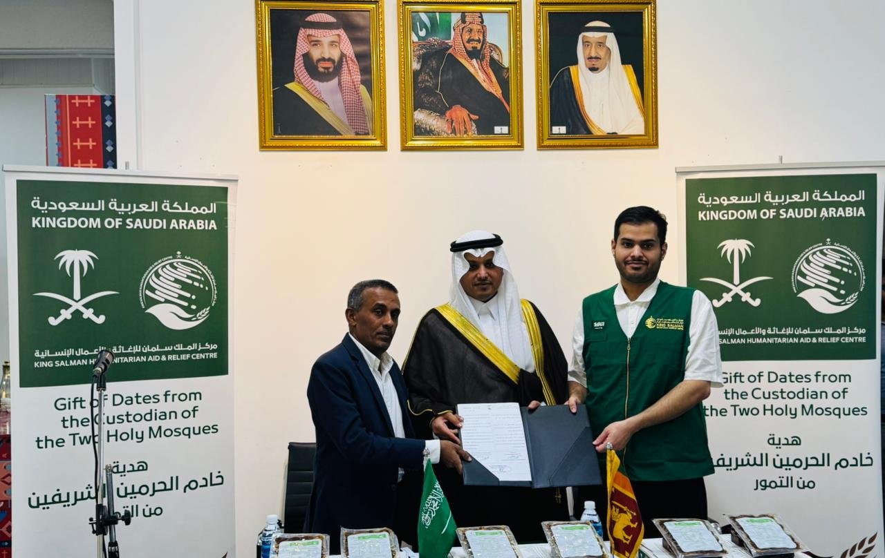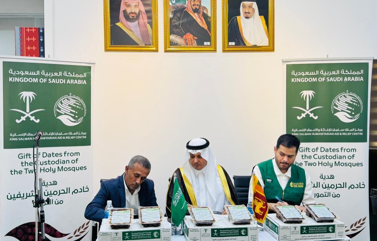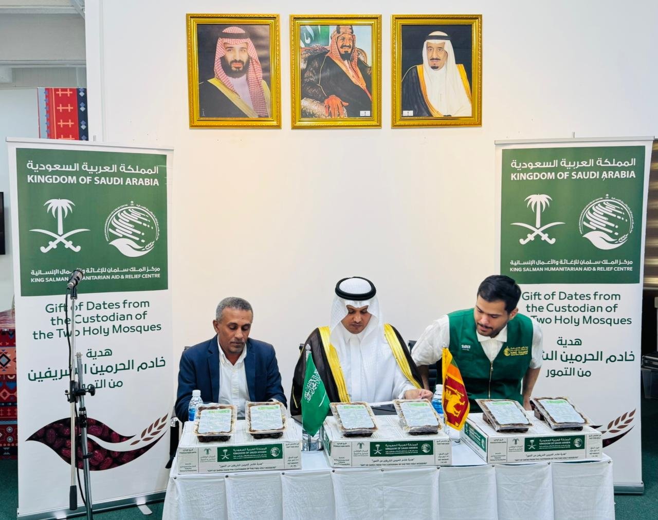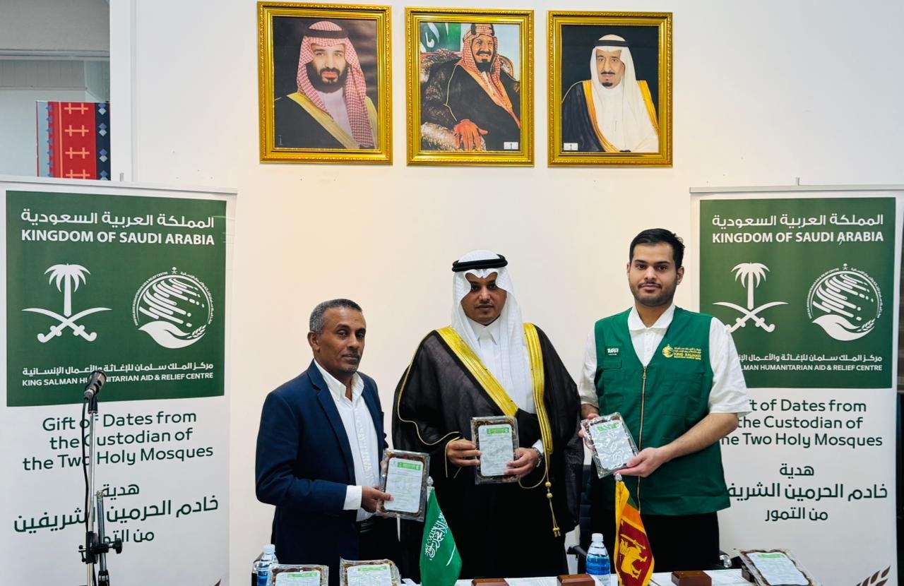 இலங்கைக்கான சவூதி தூதுவர் காலித் மஹ்மூத் அல் கஹ்தானி தலைமையில் நடைபெற்ற இந்த நிகழ்வில், மன்னர் சல்மான் மனிதாபிமான உதவி மற்றும் நிவாரண மையம் (KSrelief) வழங்கிய பேரீச்சம்பழ நன்கொடையை மத விவகாரங்கள் மற்றும் கலாசார பிரதி அமைச்சர் முனீர் முலாஃபர் பெற்றுக்கொண்டார்.