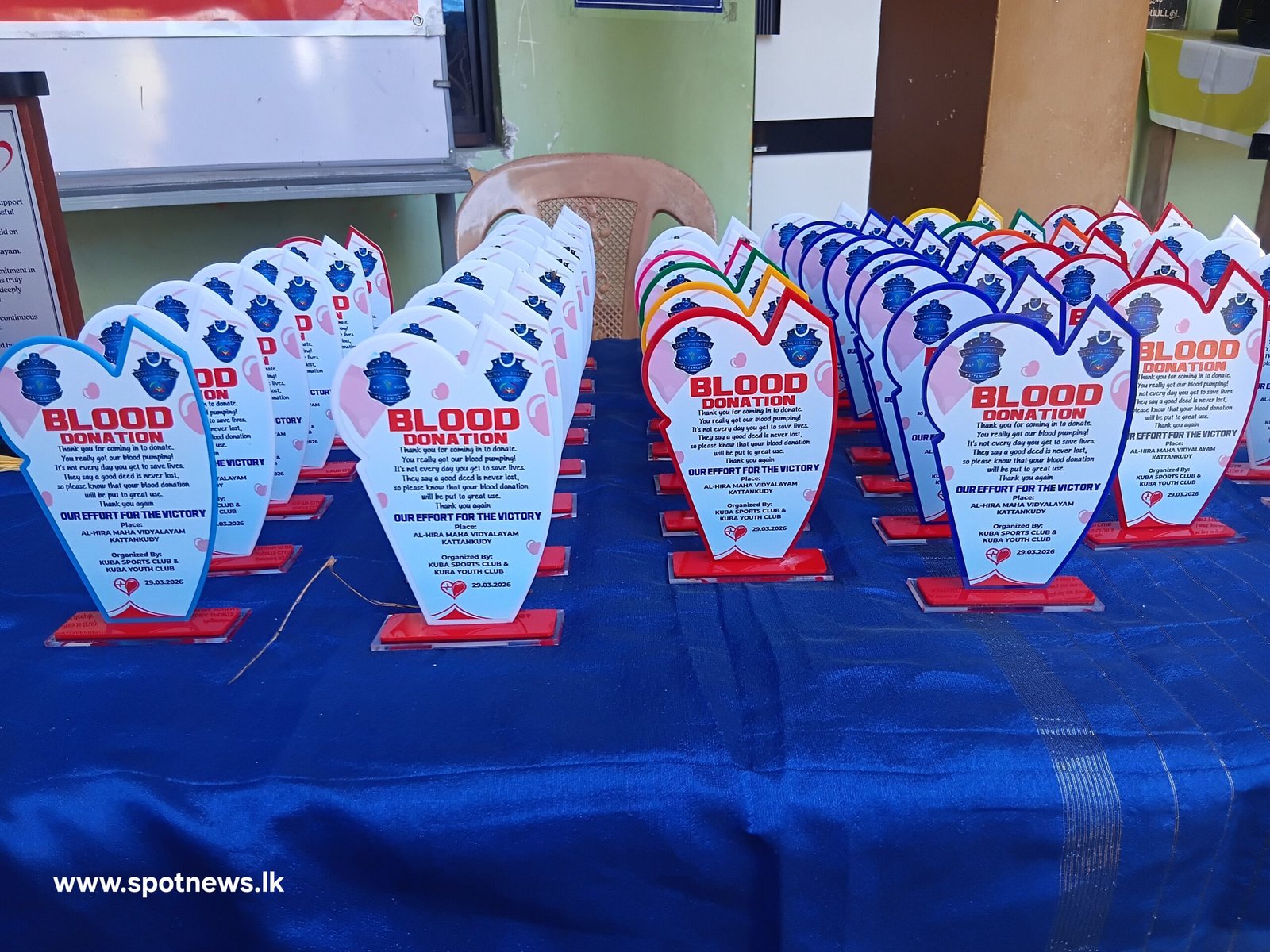 இந்நிகழ்வில் இரத்தத்தை தானமாக வழங்கிய குருதிக்கொடையாளர்களுக்கு நினைவுச் சின்னங்கள் வழங்கி கௌரவிக்கப்பட்டதுடன், காத்தான்குடி தள வைத்தியசாலையின் இரத்த வங்கிப் பிரிவினருக்கும் அவர்கள் வழங்கி வரும் சிறப்பான சேவையை பாராட்டி நினைவுச் சின்னம் வழங்கி கௌரவிக்கப்பட்டது குறிப்பிடத்தக்கது.