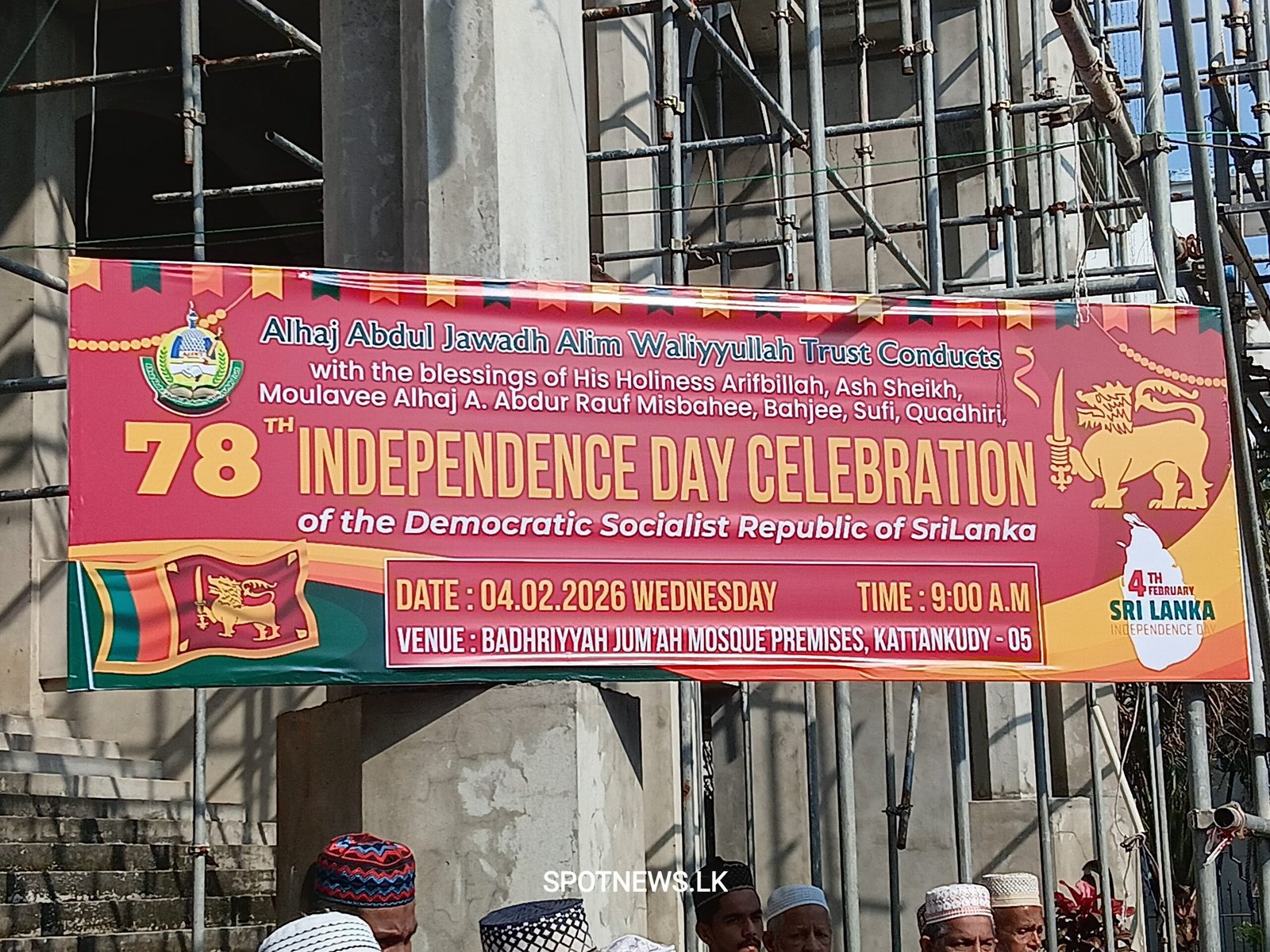அப்துல் ஜவாத் ஆலிம் வலியுல்லாஹ் நம்பிக்கை பொறுப்பு நிதியத்தின் ஏற்பாட்டில், காத்தான்குடி பத்ரியா ஜூம்ஆப் பள்ளிவாசல் வளாகத்தில் நடைபெற்ற நிகழ்வில், அதன் ஸ்தாபக தலைவர் மெளலவி அப்துர் ரஊப் மிஸ்பாஹி அவர்கள் தேசிய கொடியை ஏற்றி வைத்து நிகழ்வை ஆரம்பித்து வைத்தார்.