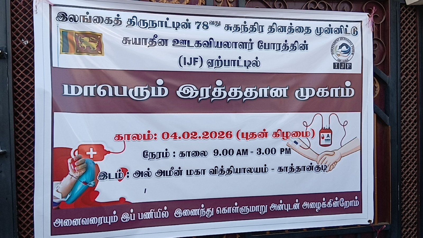 இதற்கு மேலாக, சுதந்திர ஊடகவியலாளர் போரத்தின் ஏற்பாட்டில் இரத்ததான முகாம் நடத்தப்பட்டு, மனிதநேய சேவைக்கு சிறப்பான பங்களிப்பு வழங்கப்பட்டது.