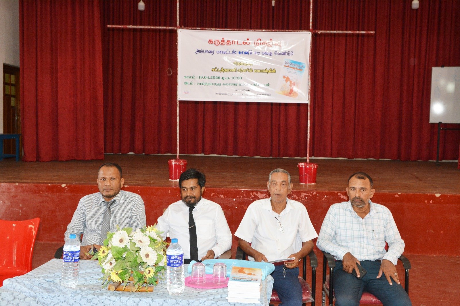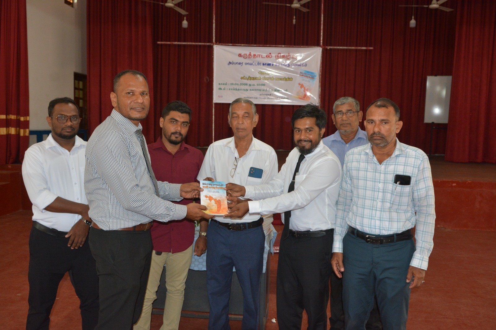 சாய்ந்தமருது கலாசார மத்திய நிலையத்தில் 2026 ஏப்ரல் 19 ஆம் திகதி, “அம்பாறை மாவட்டம்: காணிச் சமபங்கு வேண்டும்” என்ற தலைப்பில் சட்டத்தரணிகளான ஆஷிக் அலியார் மற்றும் சர்ஜுன் ஜமால்தீன் ஆகியோர் எழுதிய நூலை மையமாகக் கொண்டு விரிவான கருத்தாடல் நிகழ்வு நடைபெற்றது.