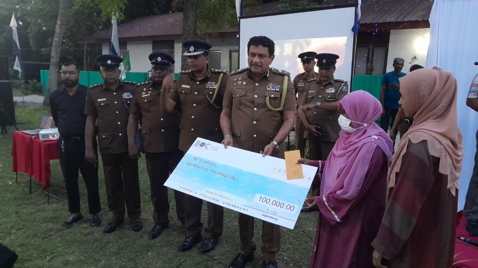 இது தவிர பொலிஸாரின் பூரண அனுசரணையுடன் பிரபல சமூக சேவகரும் இளம் தொழிலதிபருமான மஹ்மூத் மாஜித் ஏற்பாட்டில் தனது 13 வயதில் நீரிழிவு நோயினால் பாதிக்கப்பட்டு அதற்கான சிகிச்சைகளை மேற்கொண்டு வந்த நிலையில் தற்போது 2 சிறுநீரகங்களும் பாதிக்கப்பட்டு இன்னும் 4 நாட்களில் சிறுநீரக மாற்று அறுவை சிகிச்சை மேற்கொள்ள உதவி கோரிய மருதமுனை பகுதியை சேர்ந்த 33 வயதுடைய தாய் தந்தையரை இழந்து திருமணம் முடிக்காத பர்ஜீஸ்(யாழ் பல்கலைக்கழக பட்டதாரி) என்ற பெண்ணிற்கு 1 லட்சம் ரூபாய் வழங்கி வைக்கப்பட்டது.அத்துடன் குறித்த சிகிச்சைக்கு ரூபா 80 லட்சம் செலவாகும் என கணிக்கப்பட்டுள்ள நிலையில் மஹ்மூத் மாஜித் மற்றும் அவரது பாரியார் கெய்சர் ஹம்தா ஆகியோரின் தனிப்பட்ட நிதியிலிருந்து இத்தொகை வழங்கப்பட்டுள்ளமை குறிப்பிடத்தக்கது.