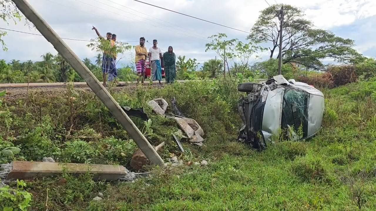 திருமண வீடொன்றுக்கு அக்கரைப்பற்றில் இருந்து திருகோணமலைக்கு குறித்த காரில் இருவர் பயணித்தபோதே இச்சம்பவம் இடம்பெற்றுள்ளது.