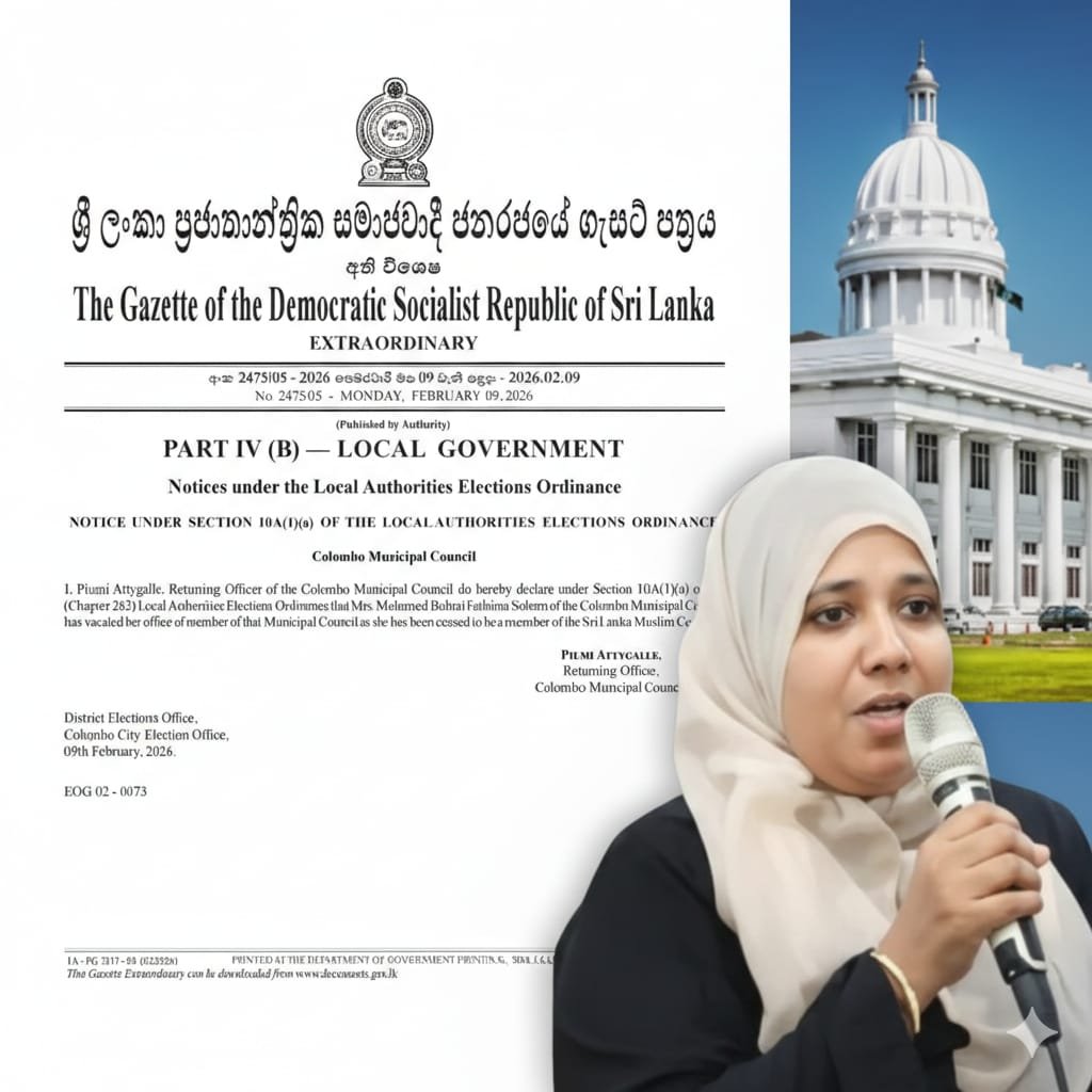 உள்ளூராட்சி அதிகாரசபைகள் தேர்தல் கட்டளைச் சட்டத்தின் 10A(1)(a) பிரிவின் கீழ், கொழும்பு மாநகர சபையின் தெரிவத்தாட்சி அதிகாரி பியுமி அத்திகலவினால் (Piumi Attygalle) இதற்கான விசேட வர்த்தமானி வெளியிடப்பட்டுள்ளது. 2026 பெப்ரவரி மாதம் 09 ஆம் திகதியிடப்பட்ட 2475/05 இலக்க விசேட வர்த்தமானி மூலம், திருமதி சுஹரா புகாரி ஸ்ரீலங்கா முஸ்லிம் காங்கிரஸின் உறுப்பினராக இல்லாது போனமையால், அவரது மாநகர சபை உறுப்பினர் பதவி வெற்றிடமாகியுள்ளதாக உத்தியோகபூர்வமாக அறிவிக்கப்பட்டுள்ளது.