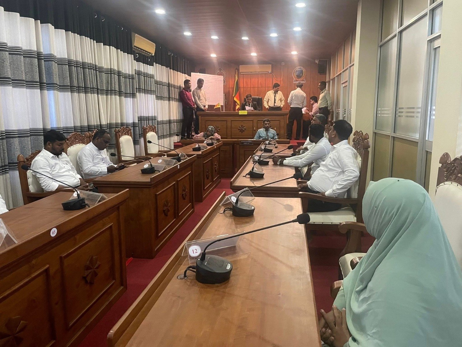 இதன் போது இன்றைய சபை நடவடிக்கைக்கு அகில இலங்கை மக்கள் காங்கிரஸ் உறுப்பினர்கள் 06 பேரும் ஸ்ரீலங்கா முஸ்லிம் காங்கிரஸ் கட்சி உறுப்பினர் சுலைமான் சாபியும் கலந்து கொண்ட நிலையில் போதியளவு கோரம் உள்ளதாக அறிவிக்கப்பட்டு புதிய தவிசாளருக்கான வாக்கெடுப்பு நடத்தப்பட்டது.