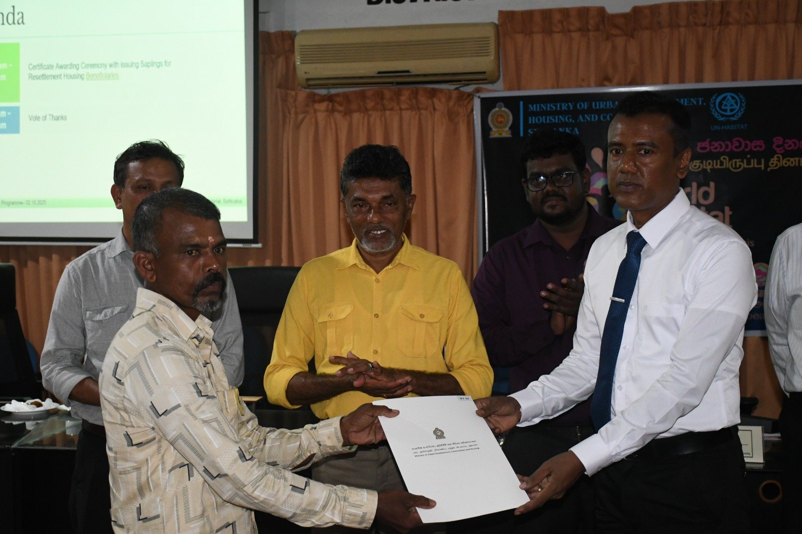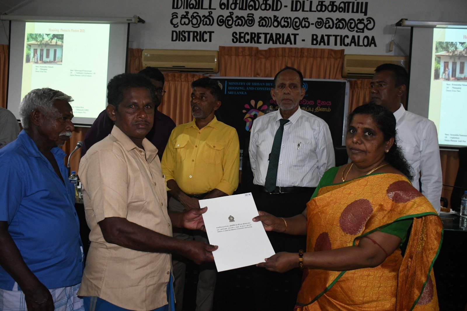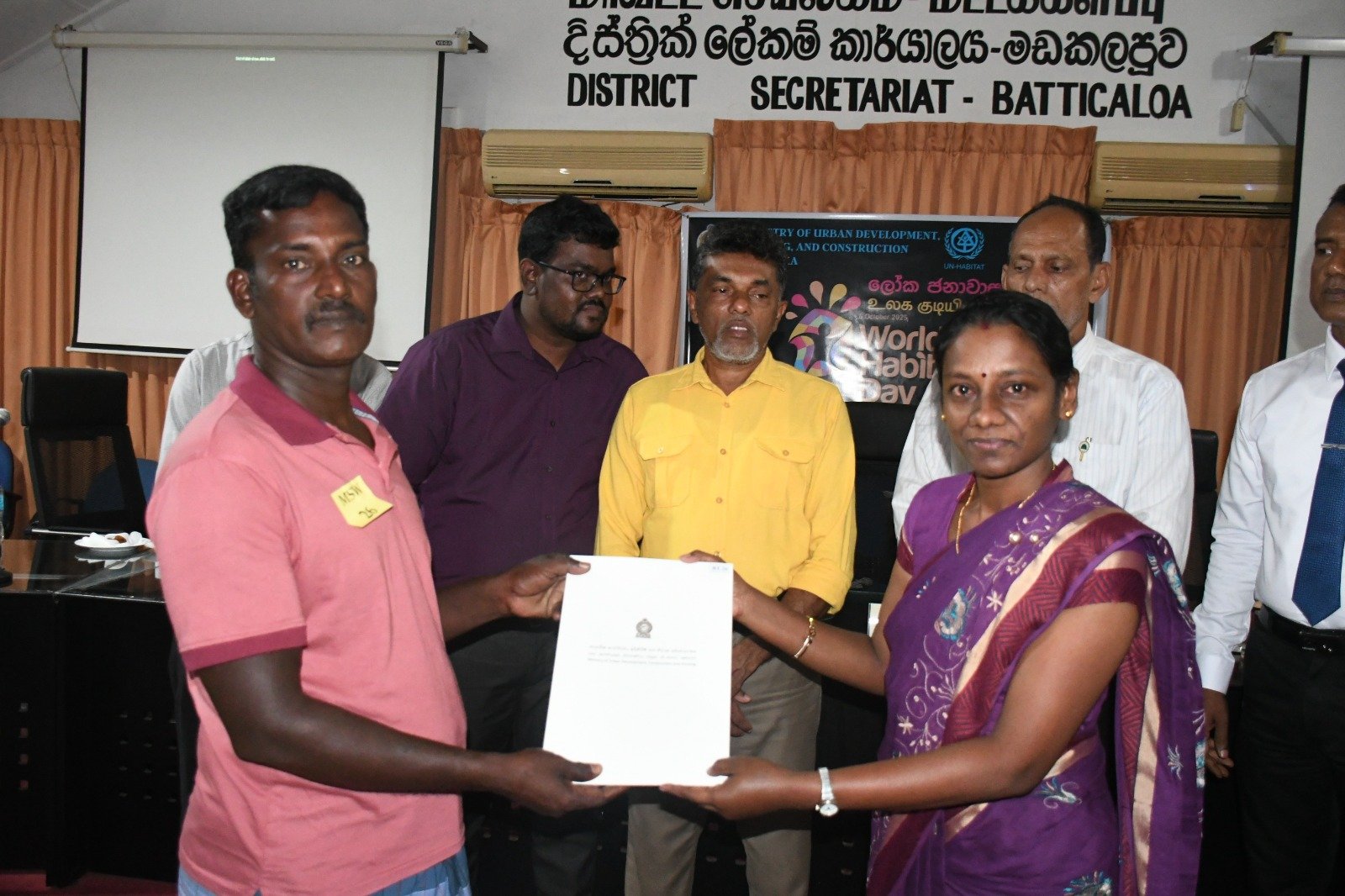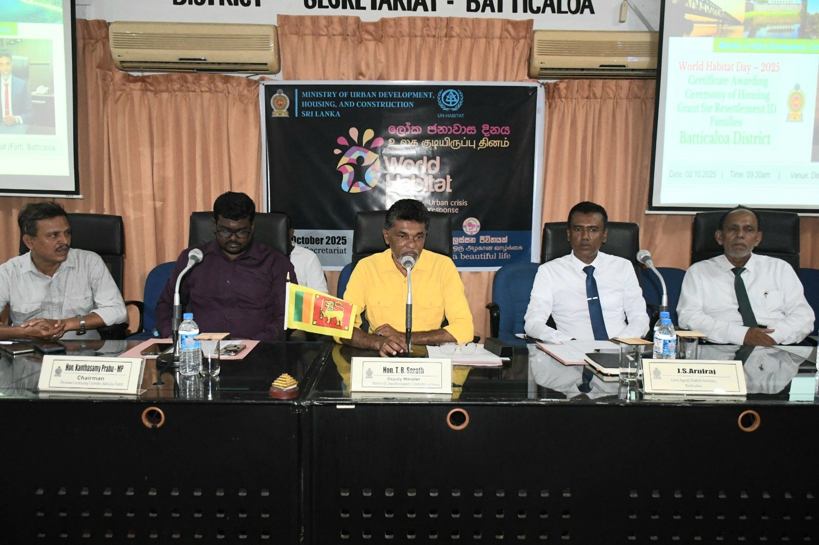 உலக குடியிருப்பு தினத்தை முன்னிட்டு மட்டக்களப்பு மாவட்டத்திற்கு நகர அபிவிருத்தி மற்றும் வீடமைப்பு பிரதி அமைச்சர் ரீ.பீ. சரத் அவர்கள் விஜயம் மேற்கொண்டு வீடுகளுக்கான சான்றிதழ்களை இன்று (02) வழங்கிவைத்தார்.