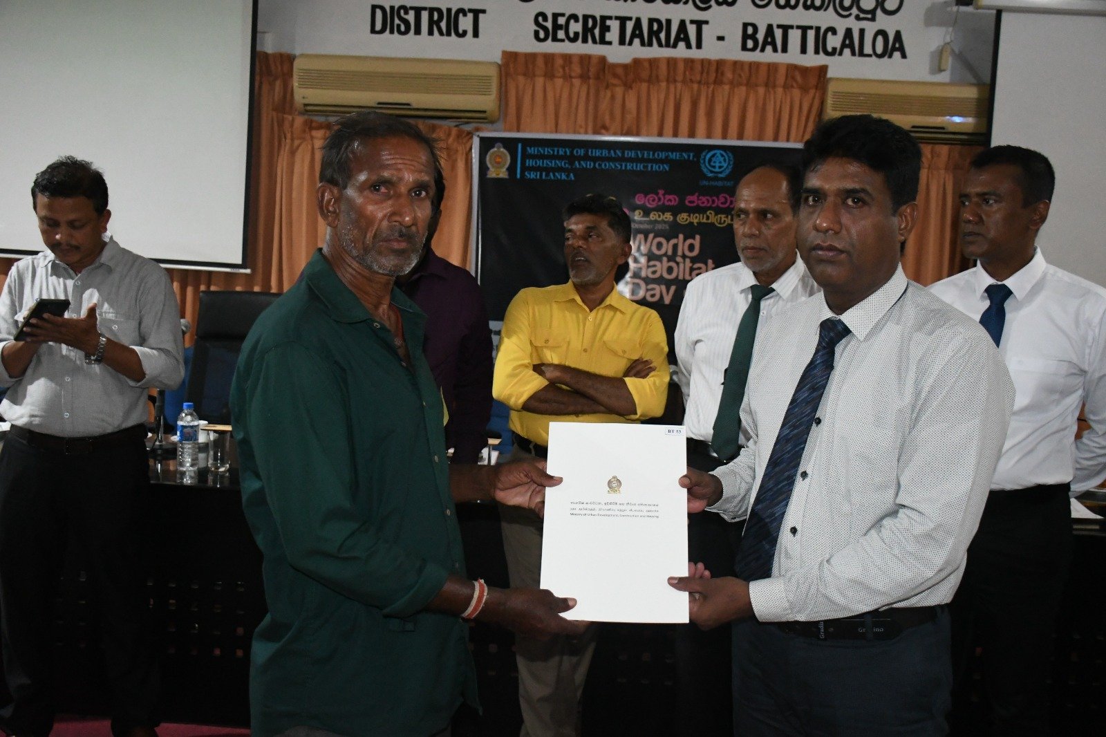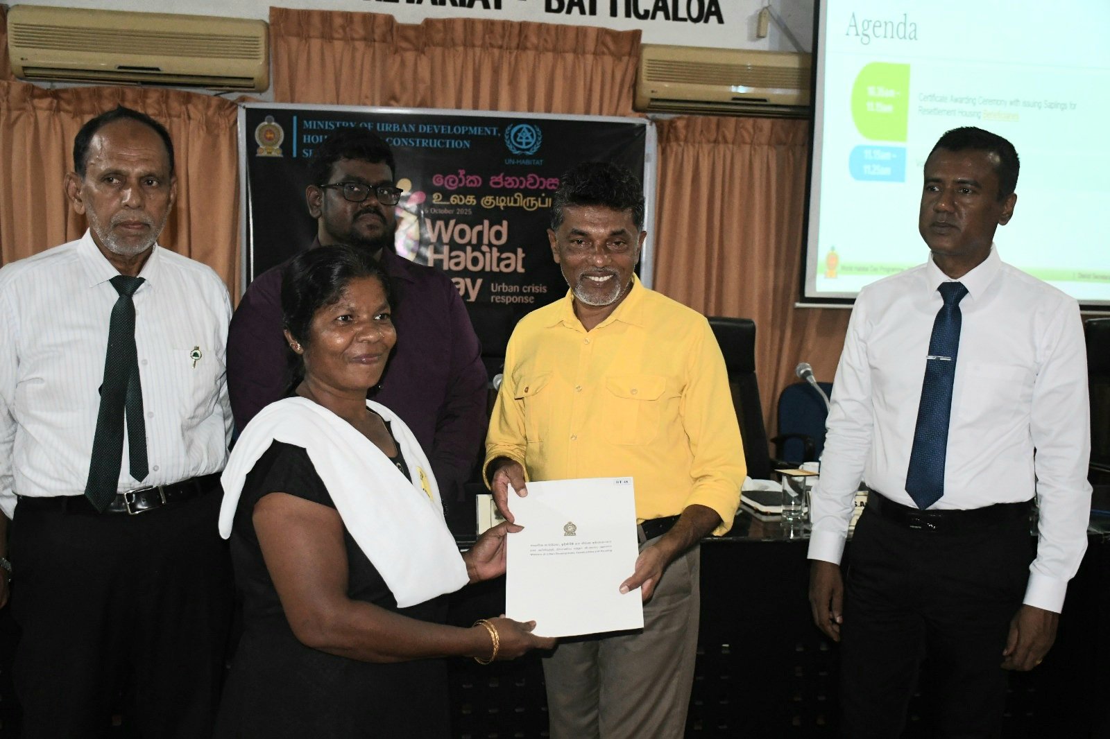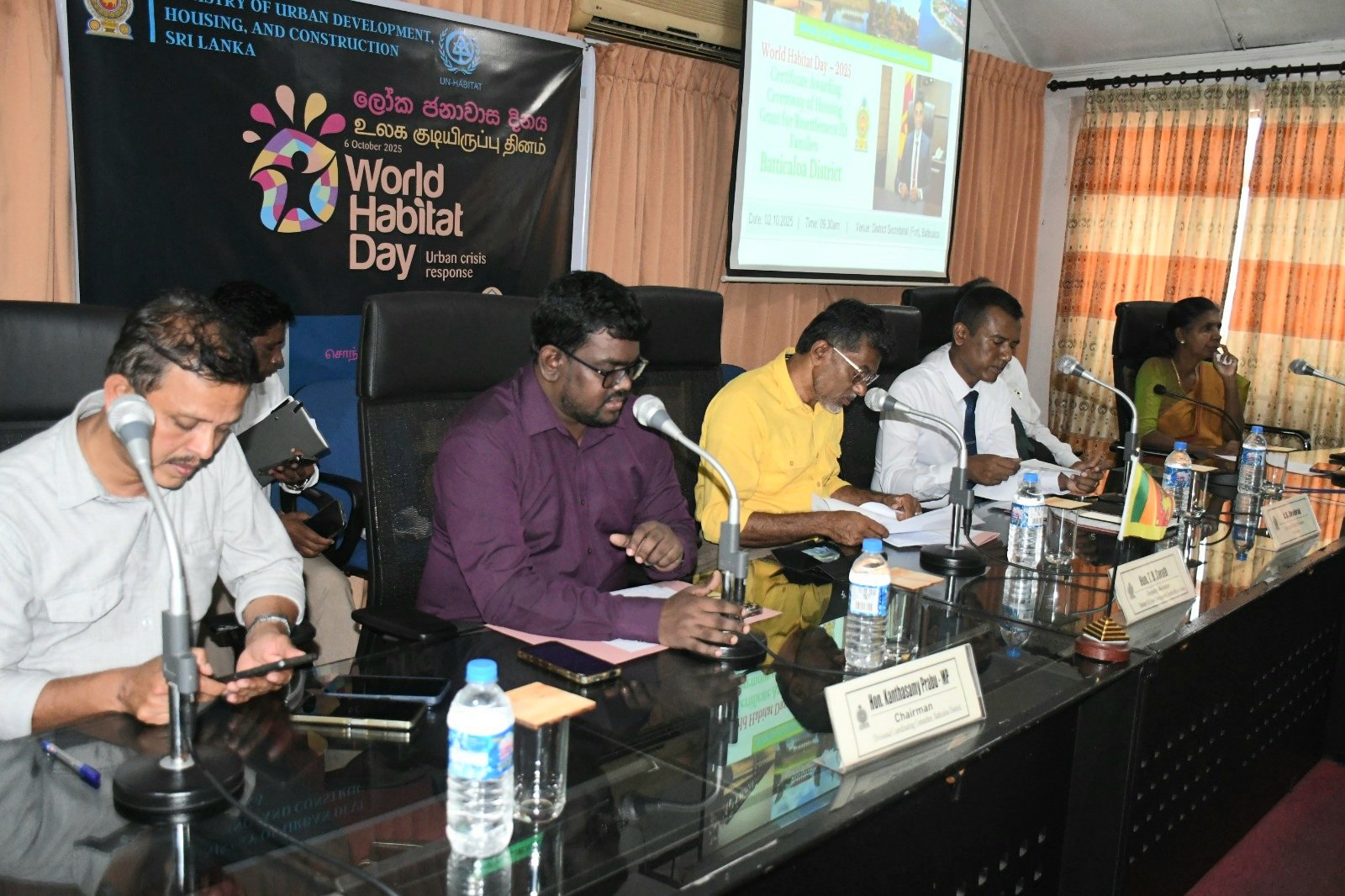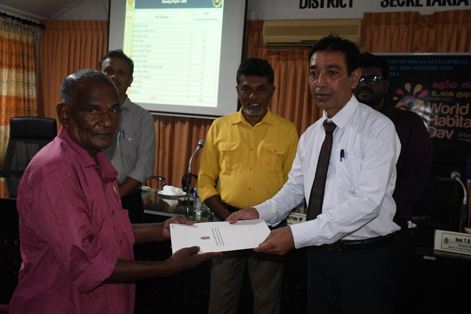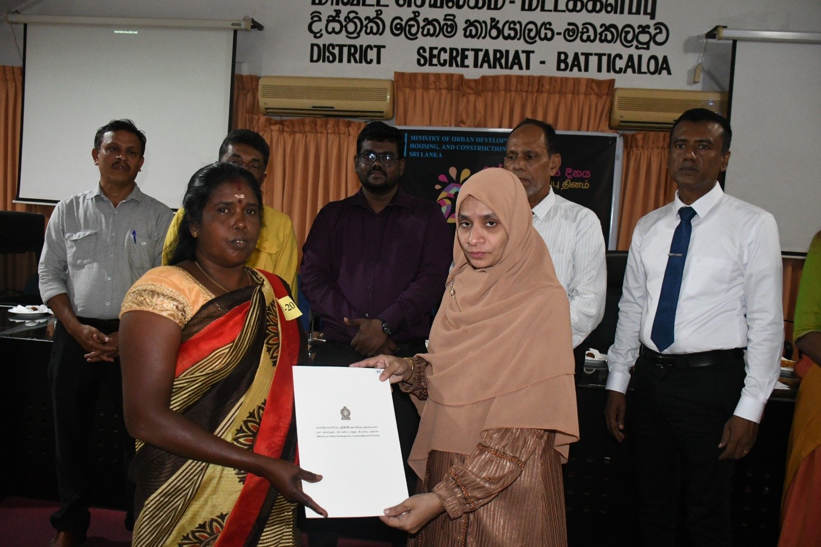 உலக குடியிருப்பு தினத்தை முன்னிட்டு மட்டக்களப்பு மாவட்டத்திற்கு நகர அபிவிருத்தி மற்றும் வீடமைப்பு பிரதி அமைச்சர் ரீ.பீ. சரத் அவர்கள் விஜயம் மேற்கொண்டு வீடுகளுக்கான சான்றிதழ்களை இன்று (02) வழங்கிவைத்தார்.