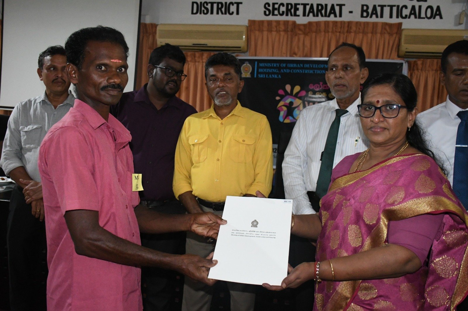 மட்டக்களப்பு மாவட்ட அரசாங்க அதிபரும் மாவட்ட செயலாளருமான ஜே.எஸ்.அருள்ராஜ் அவர்களின் எற்பாட்டில் மாவட்டத்தில் யுத்தத்தினால் இடம்பெயர்ந்து மீளக்குடியேறிய வீடற்ற நபர்களுக்கு வீடு வழங்கப்பட்டதற்கான சான்றிதழ்கள் மற்றும் தென்னங்கன்றுகள் வழங்கி வைக்கப்பட்டன.