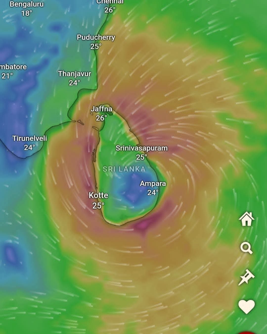 “டித்வா” ( Ditwah ) சூறாவளியானது தற்போது திருகோணமலையில் இருந்து தென் திசையாக சுமார் 50 km தொலைவில் நிலை கொண்டுள்ளது. இது வடக்கு – வடமேற்குத் திசையை நோக்கி நகர்கின்றது. ஆகையினால் வளிமண்டலவியல் திணைக்களத்தினால் வழங்கப்படுகின்ற எதிர்கால எதிர்வு கூறல்களை கவனத்திற் கொண்டு செயற்படுமாறு பொதுமக்கள் கேட்டுக் கொள்ளப்படுகின்றனர்.