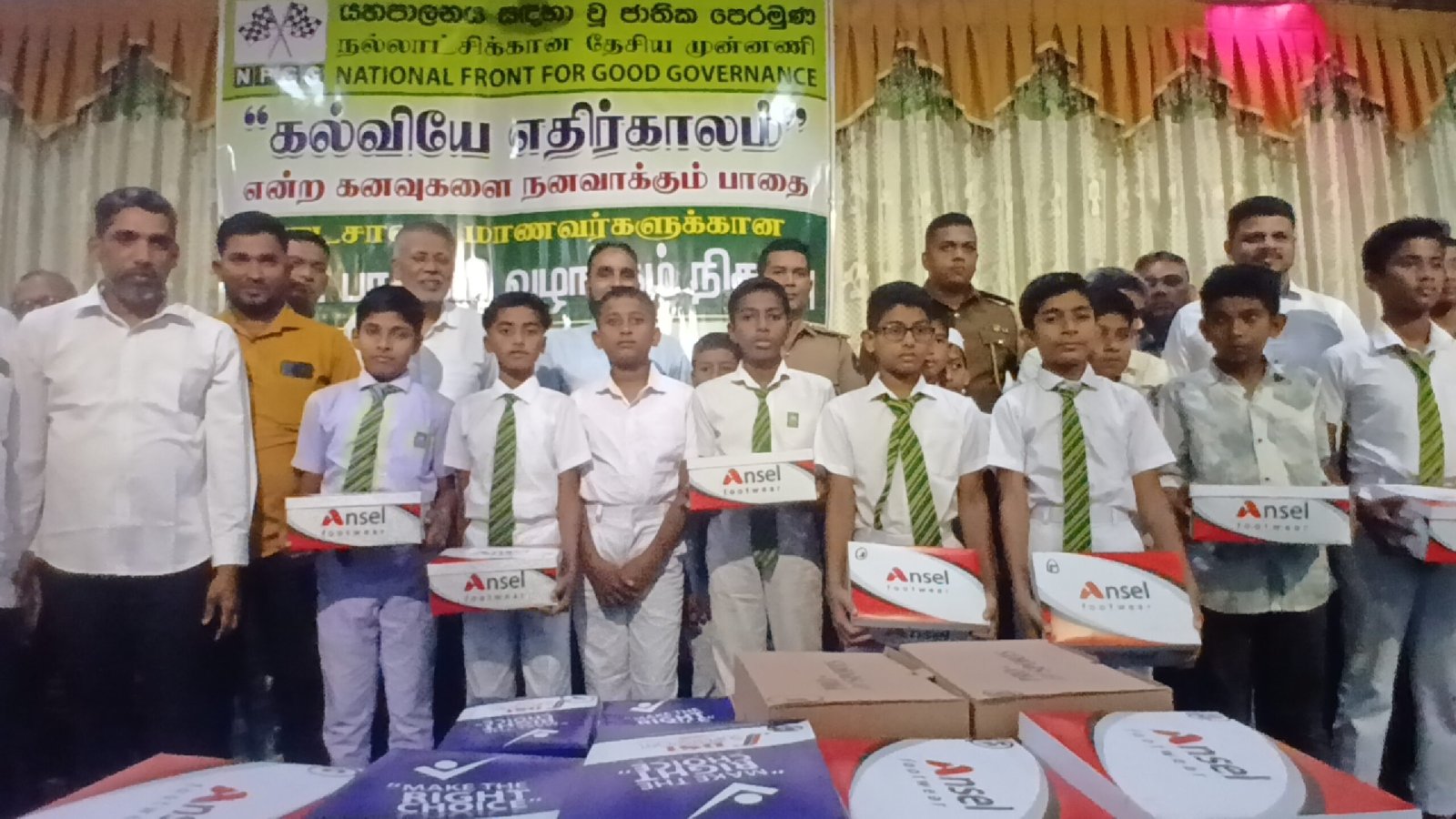 “கல்வியே எதிர்காலம்” என்ற உயரிய நோக்கத்தை முன்னிறுத்தி, 60 பாடசாலை மாணவர்களுக்கு புதிய பாதணிகள் வழங்கும் நிகழ்வும், மாணவர்களுக்கான சிறப்பு விழிப்புணர்வு உரையும் இன்று (15) ஞாயிற்றுக்கிழமை மாலை காத்தான்குடி அல்-மனார் அறிவியல் கல்லூரி அப்துல் ஜவாத் மண்டபத்தில் நல்லாட்சிக்கான தேசிய முன்னணியின் காத்தான்குடி நகரசபை உறுப்பினர் ஏ.எம்.எம். பர்ஸாத் தலைமையில் இடம்பெற்றது.