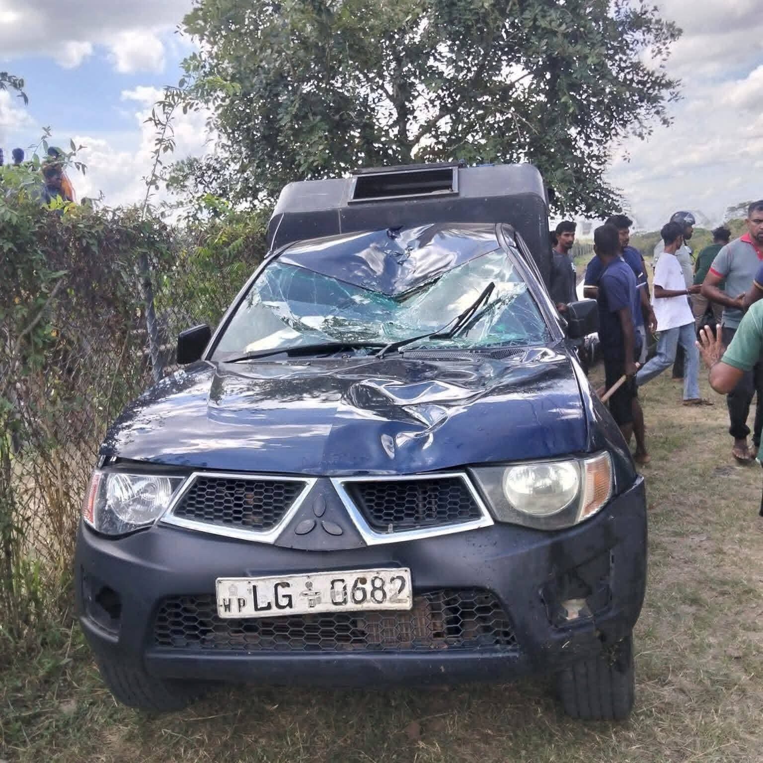 ஆனால் நிலத்துக்கு வந்ததும், அந்த யானை திடீரென ஆவேசமடைந்து வனஜீவ கேப் வாகனம் ஒன்றையும், நான்கு மோட்டார் சைக்கிள்களையும் தாக்கி கடுமையான சேதத்தை ஏற்படுத்தியுள்ளது.