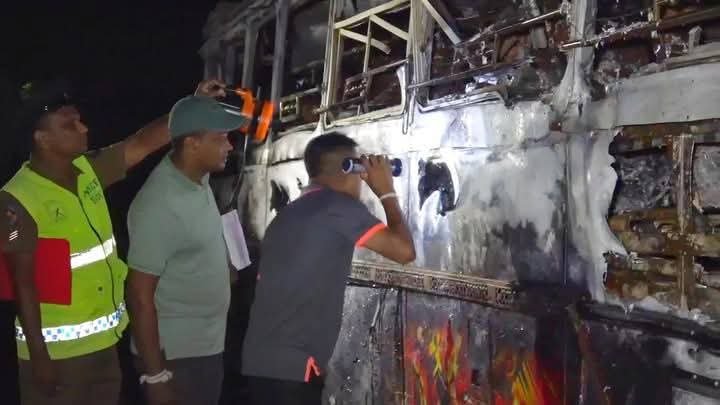 இதன்போது, அவர்கள் வந்த பேருந்தில் தீப்பிடித்துள்ளது.