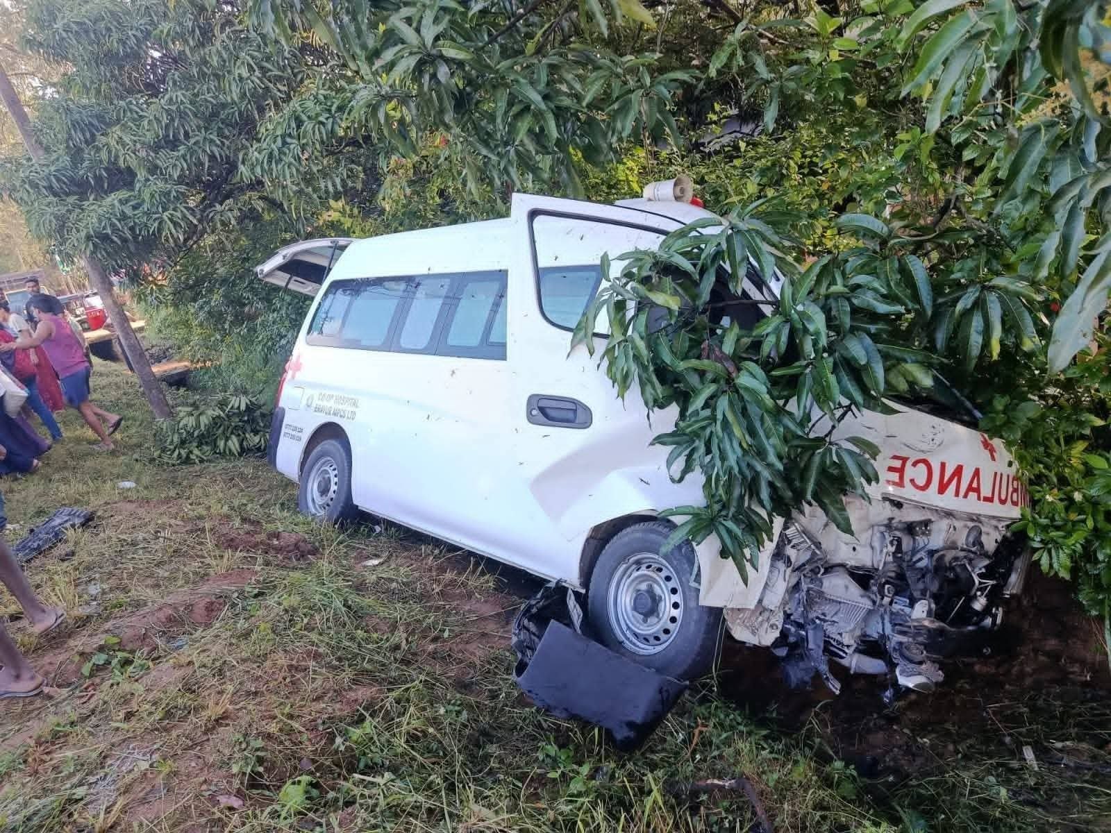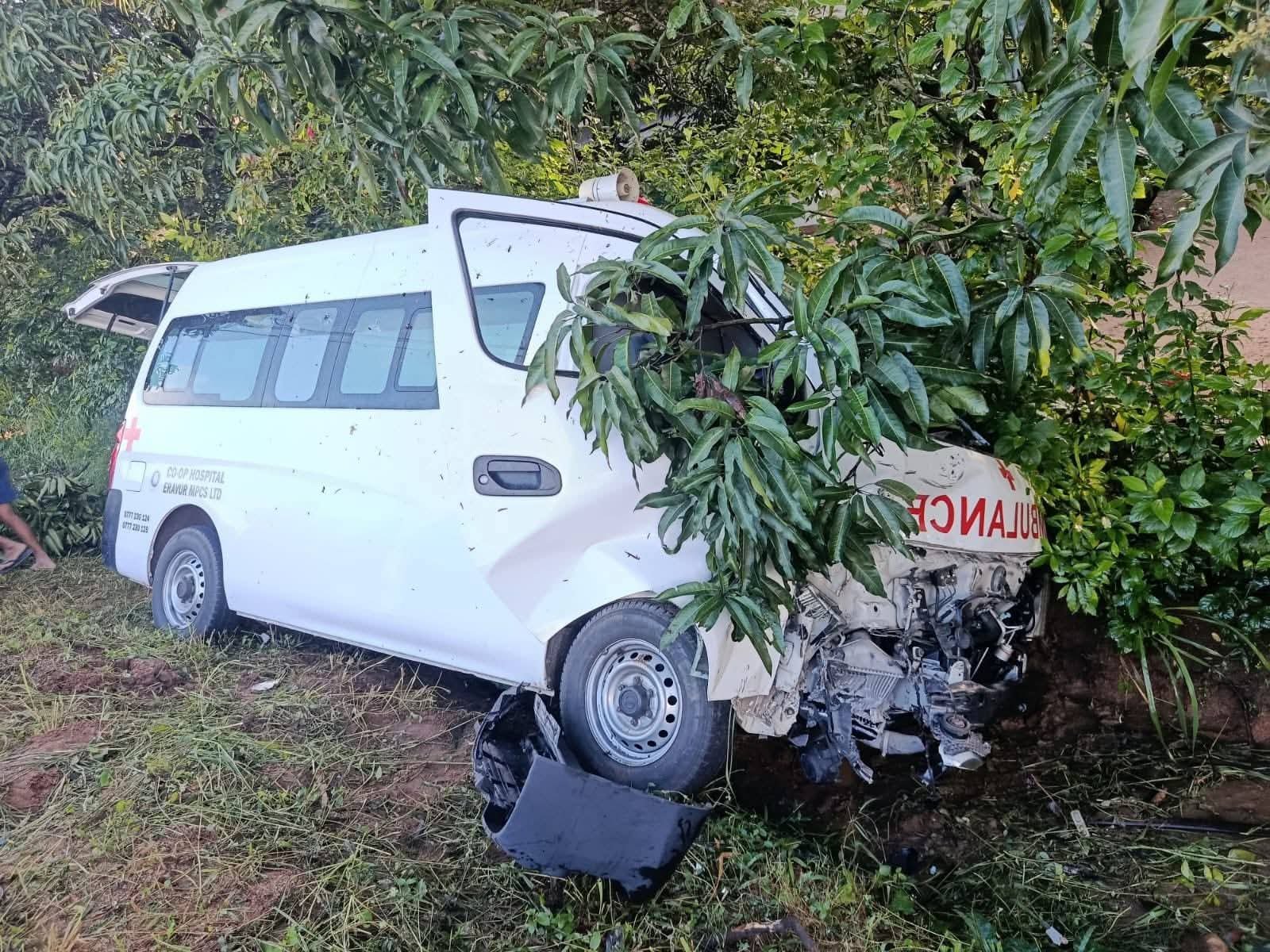 ஏறாவூரிலிருந்து கொழும்பு நோக்கிப் பயணித்த குறித்த அம்பியுலன்ஸ், தம்புள்ள – ஹபரணை பகுதியில் இன்று அதிகாலை விபத்துக்குள்ளானதாக தெரிவிக்கப்படுகிறது.