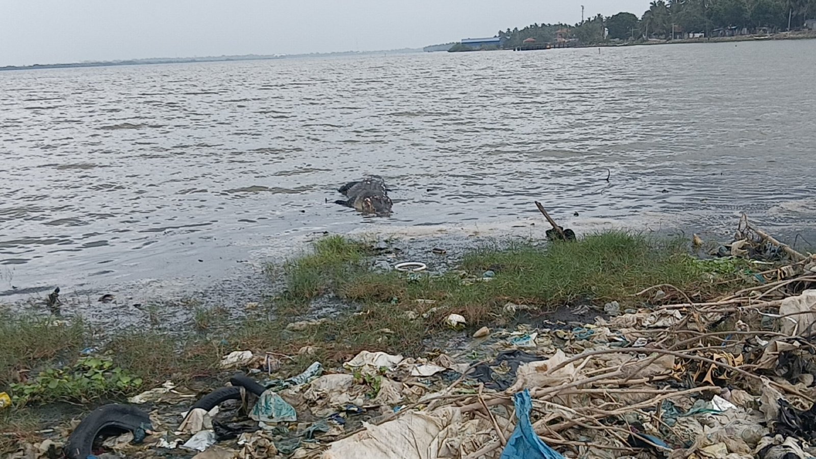 காத்தான்குடி ஆற்றங்கரை பகுதியில்; இறந்த நிலையில் 18 அடி முதலை கரையொதுங்கியது.!!!