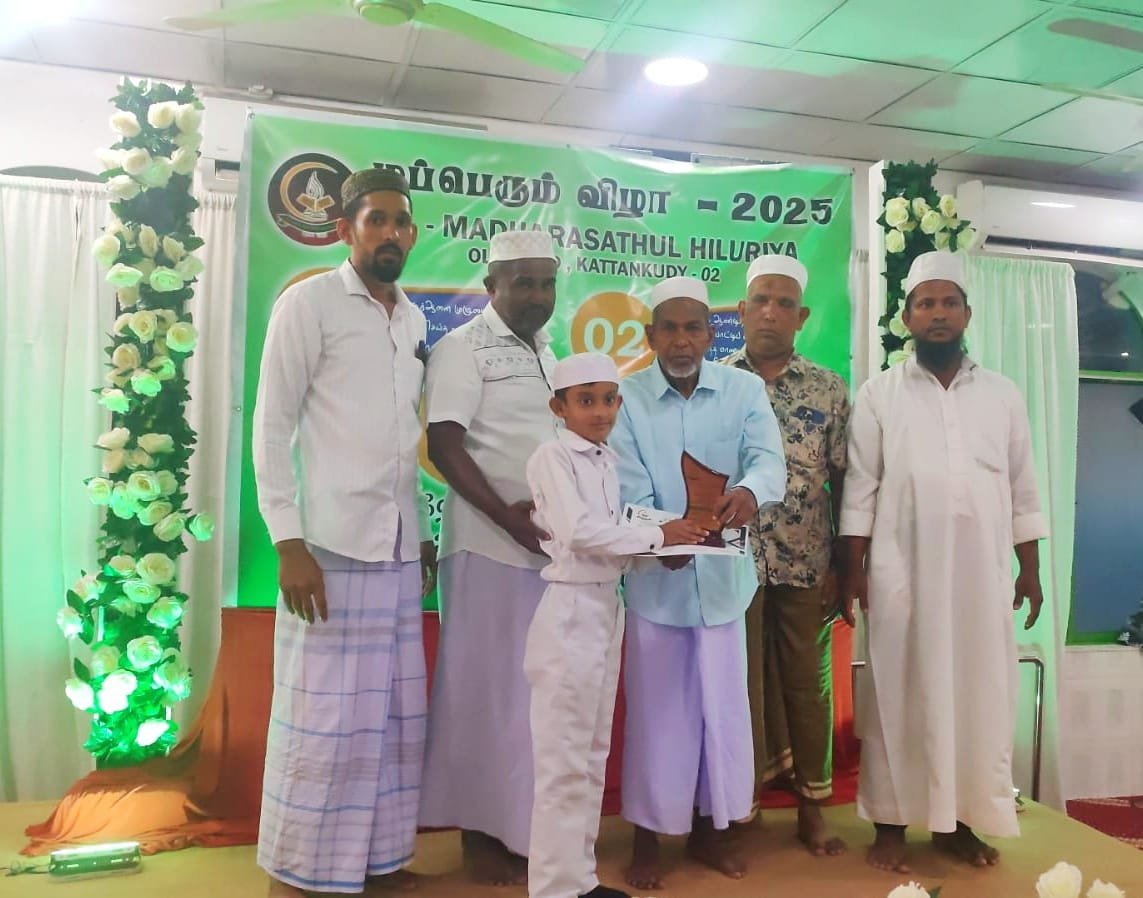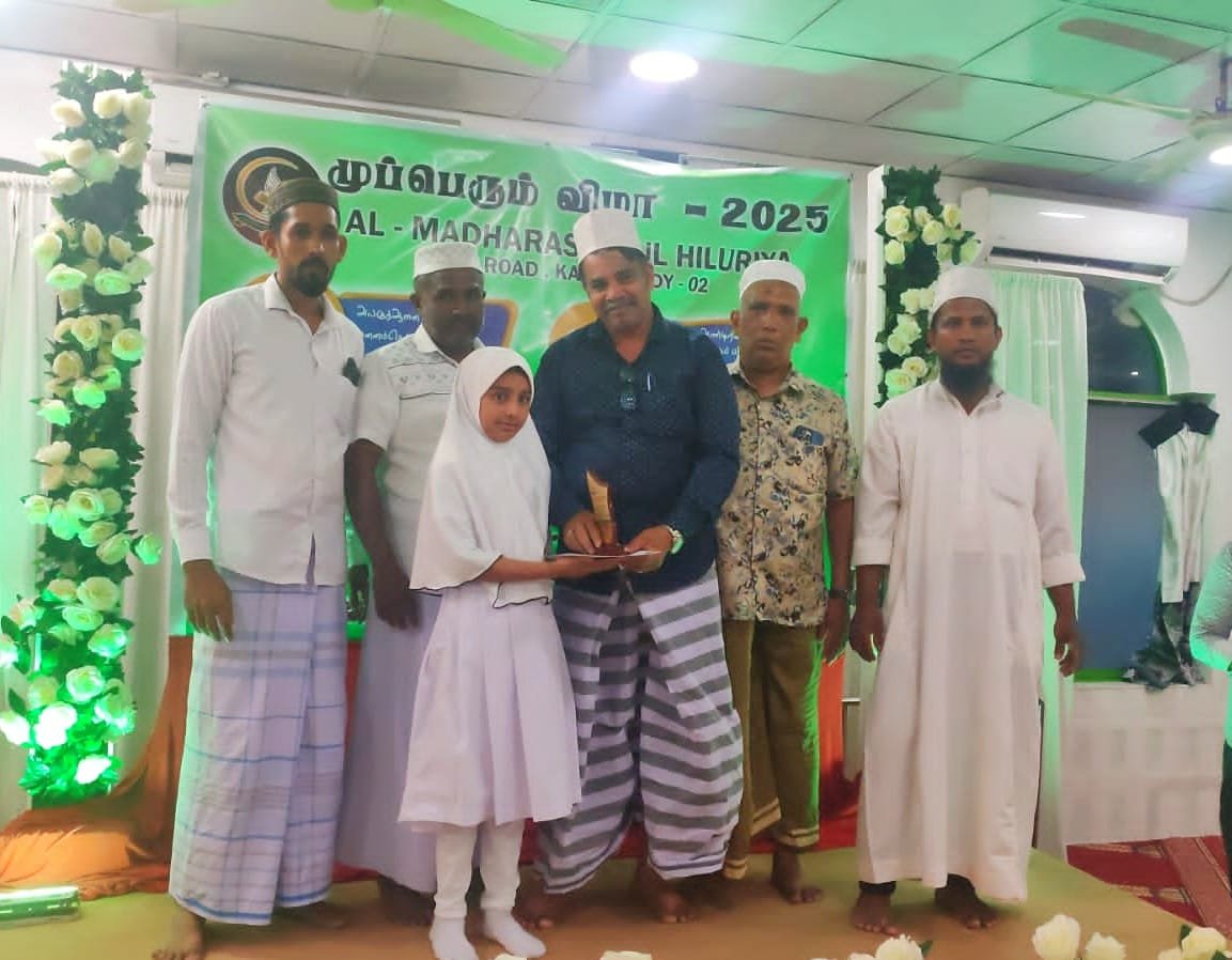 மஸ்ஜித் உப தலைவர் எம்.சீ.எஸ்.அப்துல் சத்தார் தலைமையில் இடம்பெற்ற இந் நிகழ்வில் அல் குர் ஆனை முழுமையாக மனனம் செய்த ஹாபிழ்கள் கெளரவிக்கும் நிகழ்வு, 2024 ம் ஆண்டிற்கான அல் குர் ஆன் போட்டிப் பரீட்சையில் சித்தியடைந்த மாணவர்கள் கெளரவிக்கப்பட்டதுடன், பள்ளிவாயல் காணி கொள்வனவு மற்றும் மத்ரஸா கட்டிட வேலைகளுக்கு உதவிய நன்கொடையாளர்களை கெளரவிக்கும் நிகழ்வும் இடம்பெற்றது.