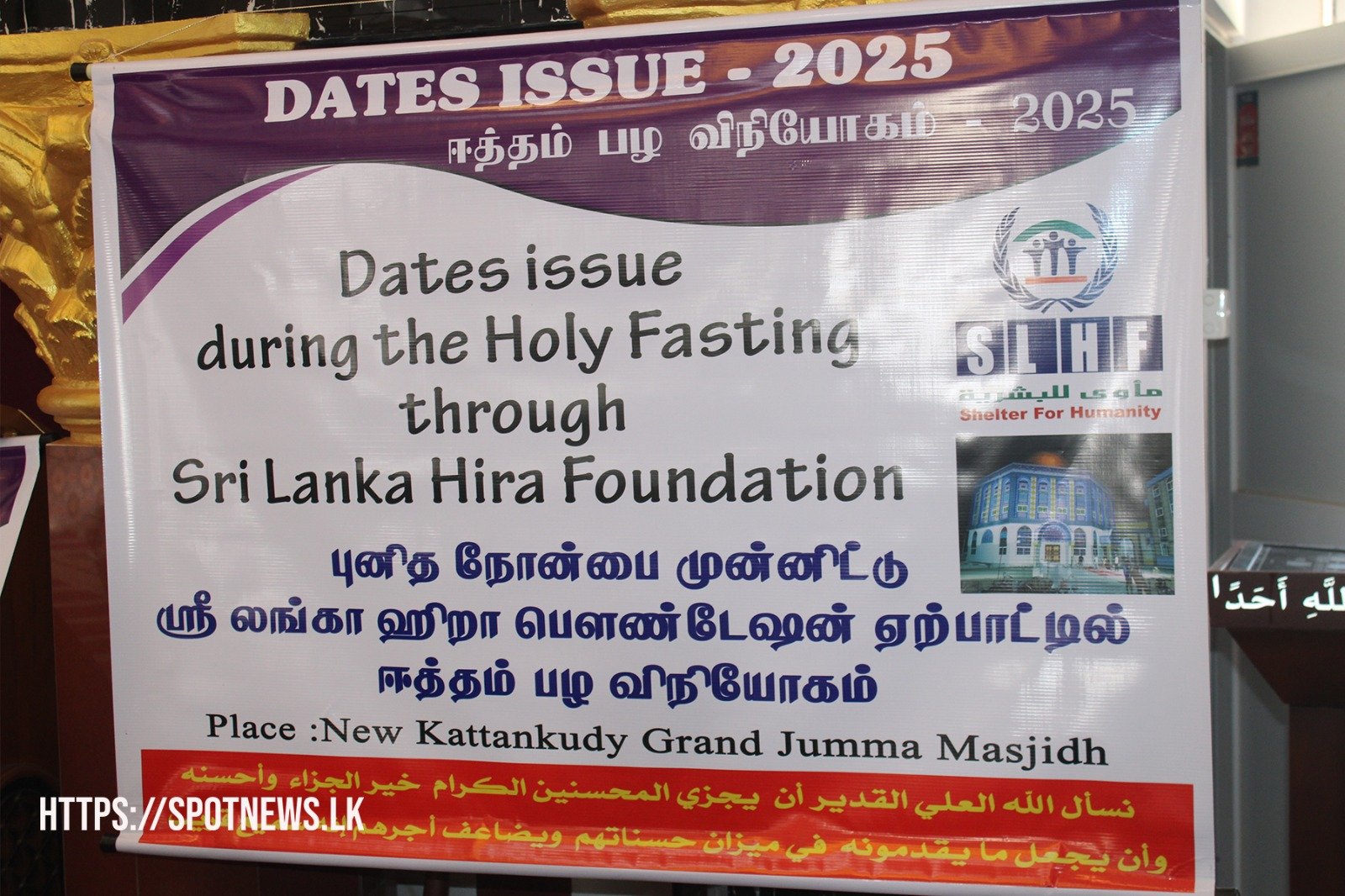 புனித நோன்பை முன்னிட்டு மட்டக்களப்பு மாவட்டத்திலுள்ள முஸ்லிம் குடும்பங்கள் நோன்பு திறப்பதற்காக காத்தான்குடி மற்றும் அதனை அண்டிய பிரதேச பள்ளிவாயல்கள், சமூக நிறுவனங்களுக்கு பேரீத்தம்பழம் வழங்கி வைக்கப்பட்டது.