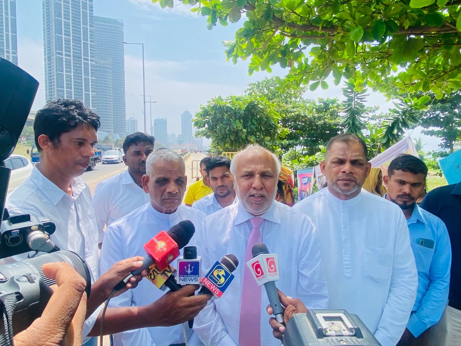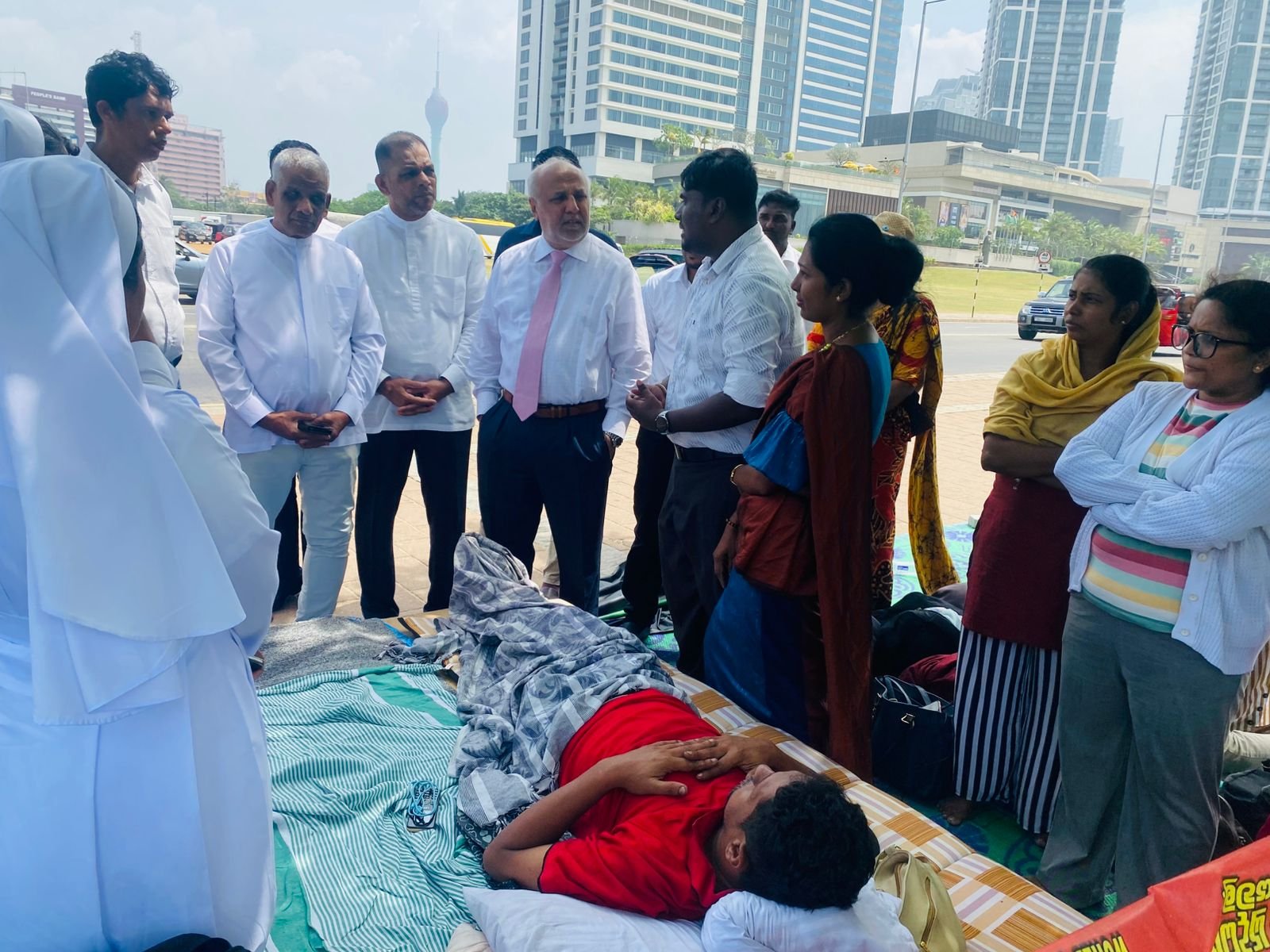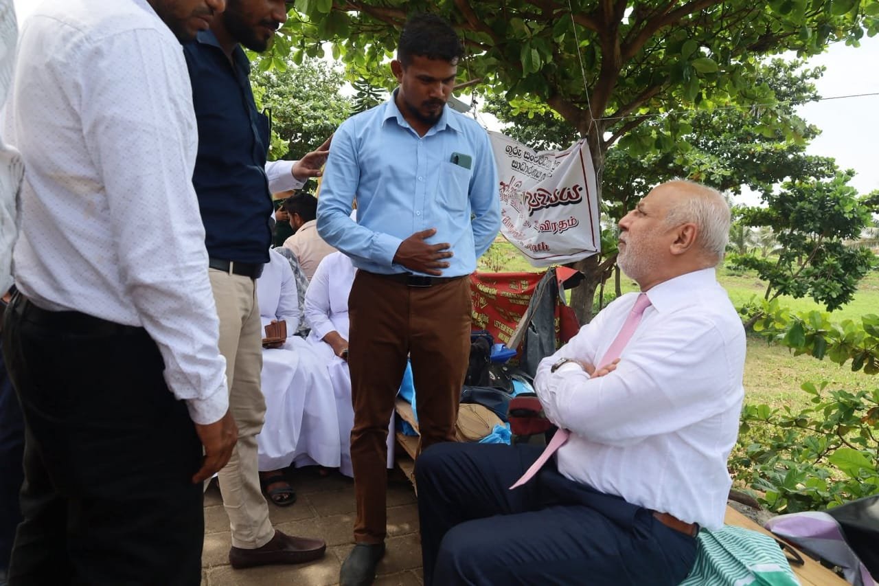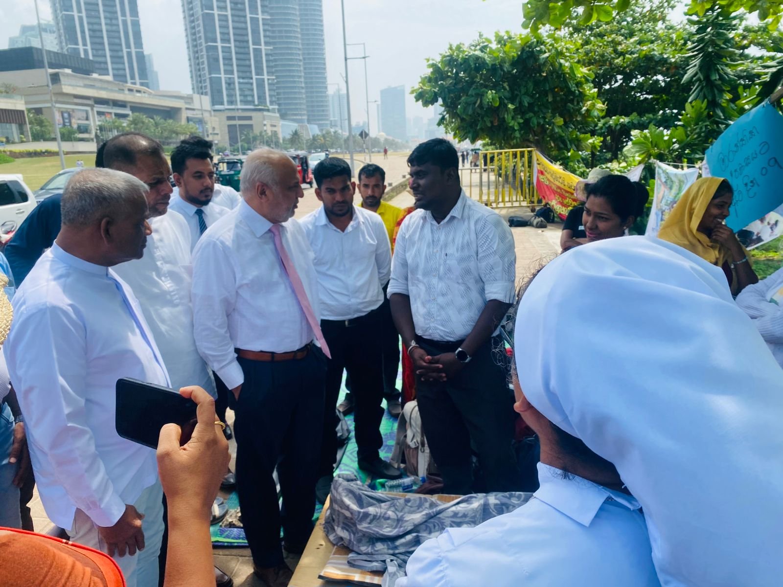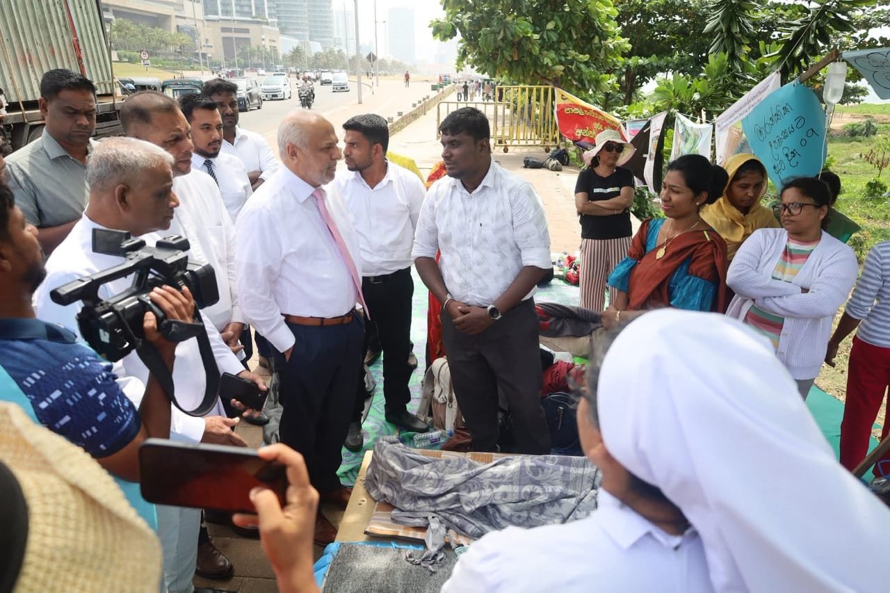 கொழும்பு, கோட்டை பகுதியில் அமைந்துள்ள ஜனாதிபதி செயலகத்திற்கு முன்பாக, ஆசிரியர் அபிவிருத்தி அதிகாரிகளின் தொடர் உண்ணாவிரதப் போராட்டம் நடைபெற்று வரும் நிலையில், ஸ்ரீலங்கா முஸ்லிம் காங்கிரஸ் தலைவர் மற்றும் பாராளுமன்ற உறுப்பினருமான ரவூப் ஹக்கீம் அவர்கள், போராட்டம் நடைபெறும் இடத்திற்கு நேரில் சென்று போராட்டத்தில் ஈடுபட்டுள்ள அதிகாரிகளை சந்தித்து, அவர்களின் பிரச்சினைகள் குறித்து கலந்தாலோசித்தார்.