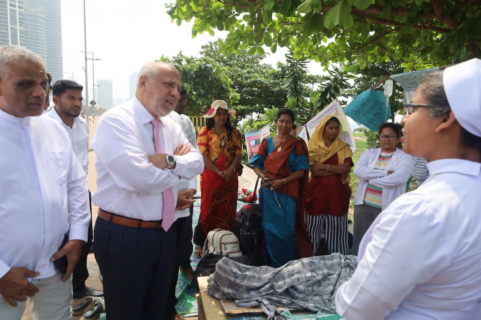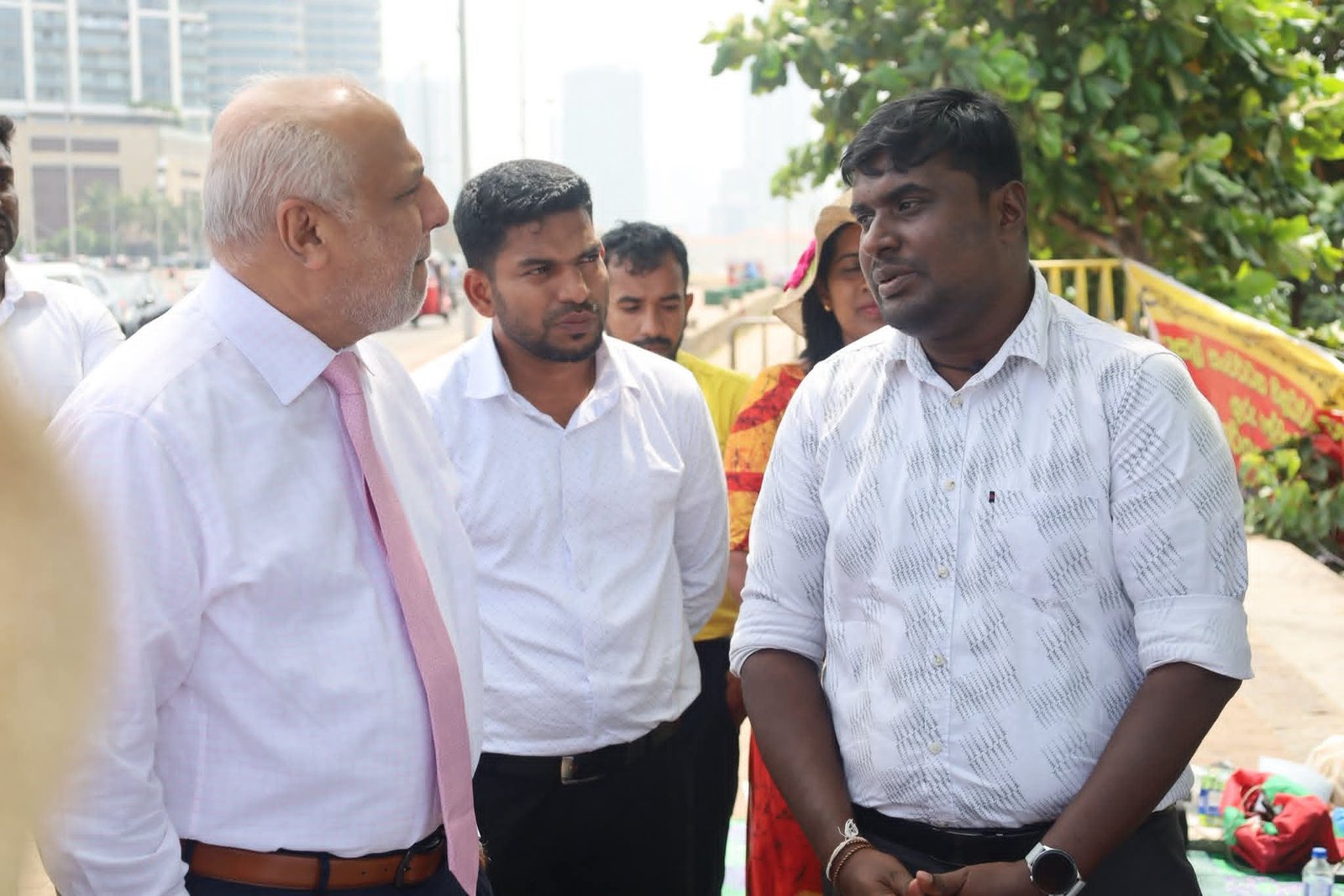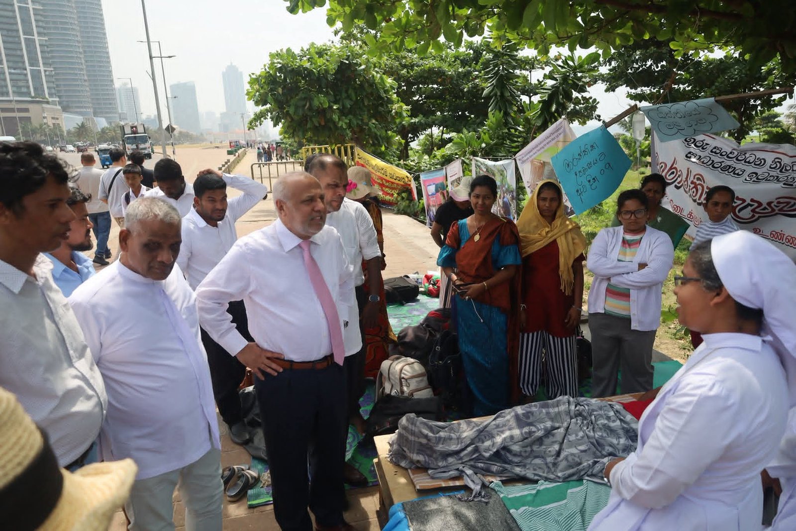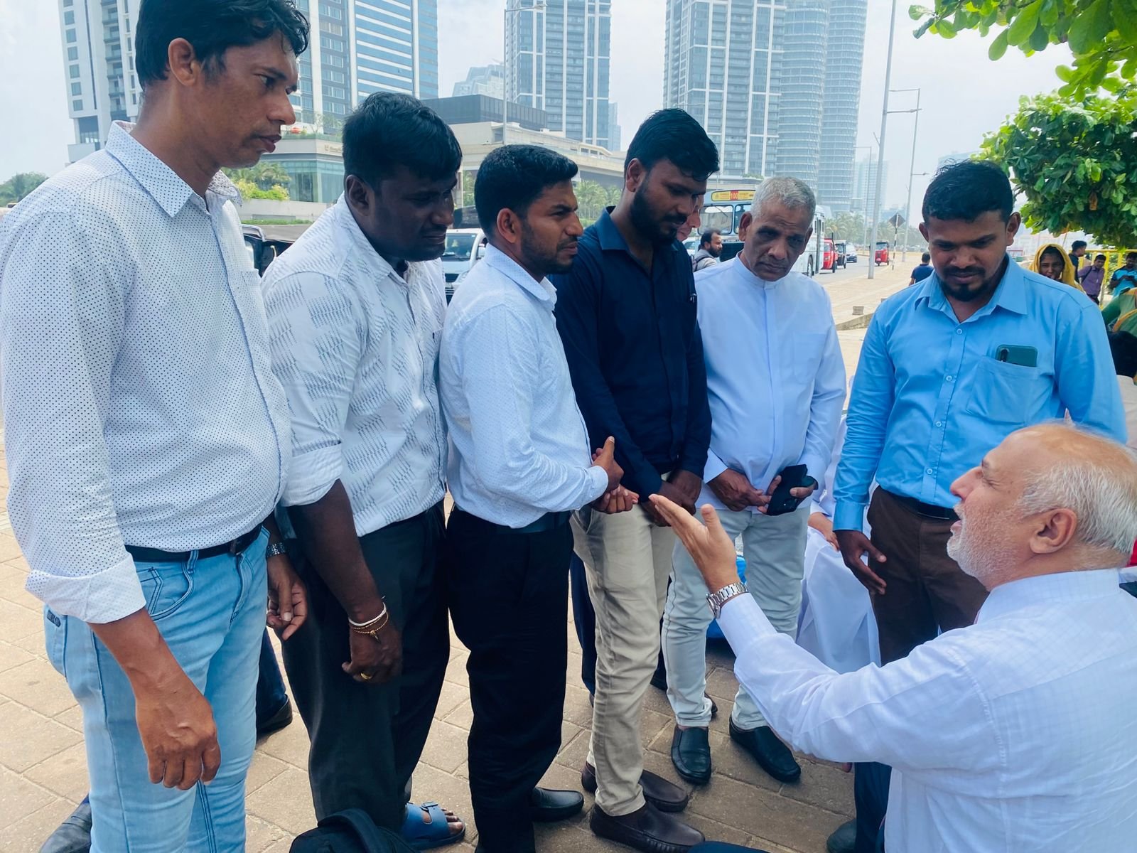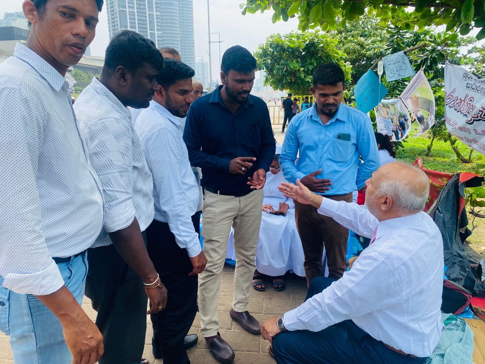 கொழும்பு, கோட்டை பகுதியில் அமைந்துள்ள ஜனாதிபதி செயலகத்திற்கு முன்பாக, ஆசிரியர் அபிவிருத்தி அதிகாரிகளின் தொடர் உண்ணாவிரதப் போராட்டம் நடைபெற்று வரும் நிலையில், ஸ்ரீலங்கா முஸ்லிம் காங்கிரஸ் தலைவர் மற்றும் பாராளுமன்ற உறுப்பினருமான ரவூப் ஹக்கீம் அவர்கள், போராட்டம் நடைபெறும் இடத்திற்கு நேரில் சென்று போராட்டத்தில் ஈடுபட்டுள்ள அதிகாரிகளை சந்தித்து, அவர்களின் பிரச்சினைகள் குறித்து கலந்தாலோசித்தார்.