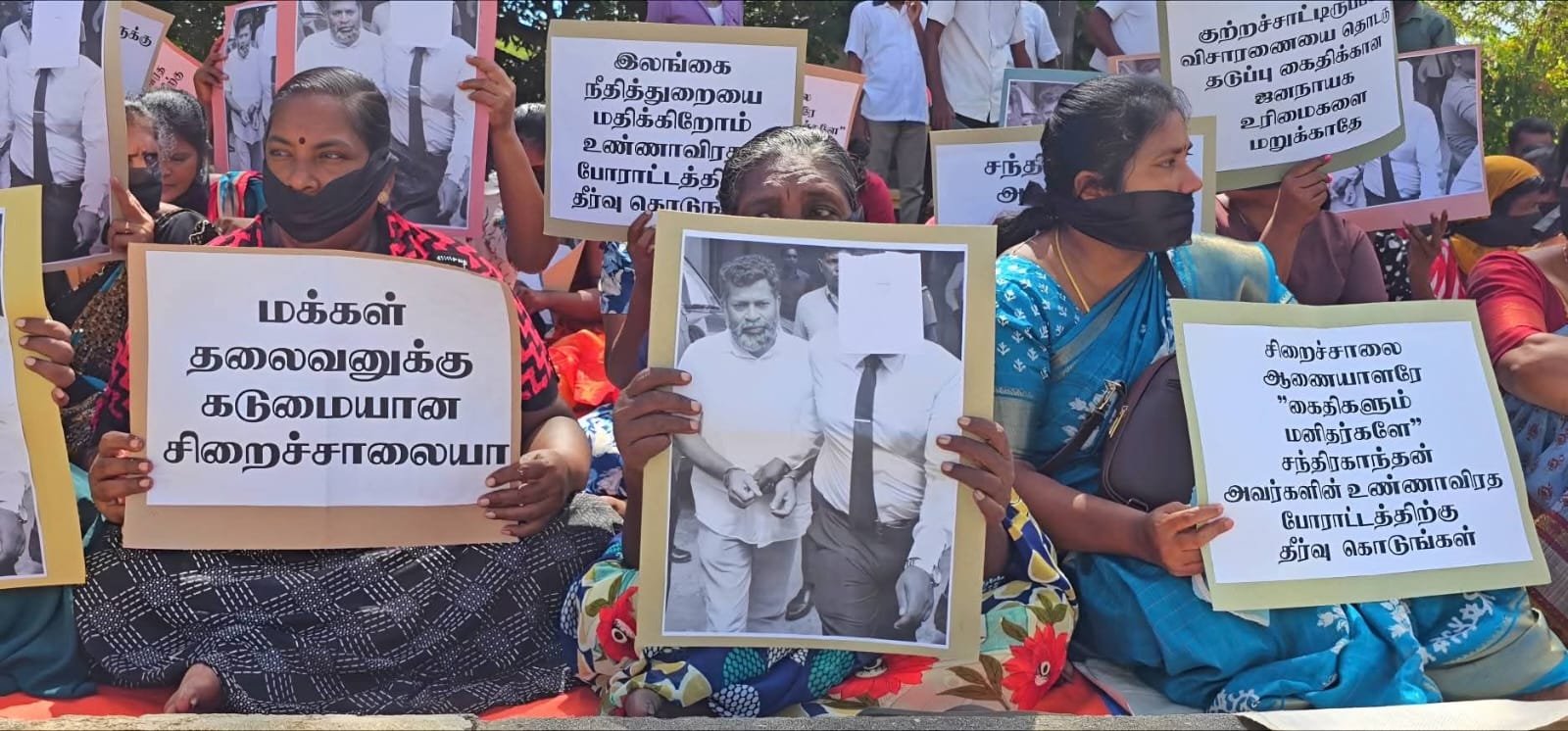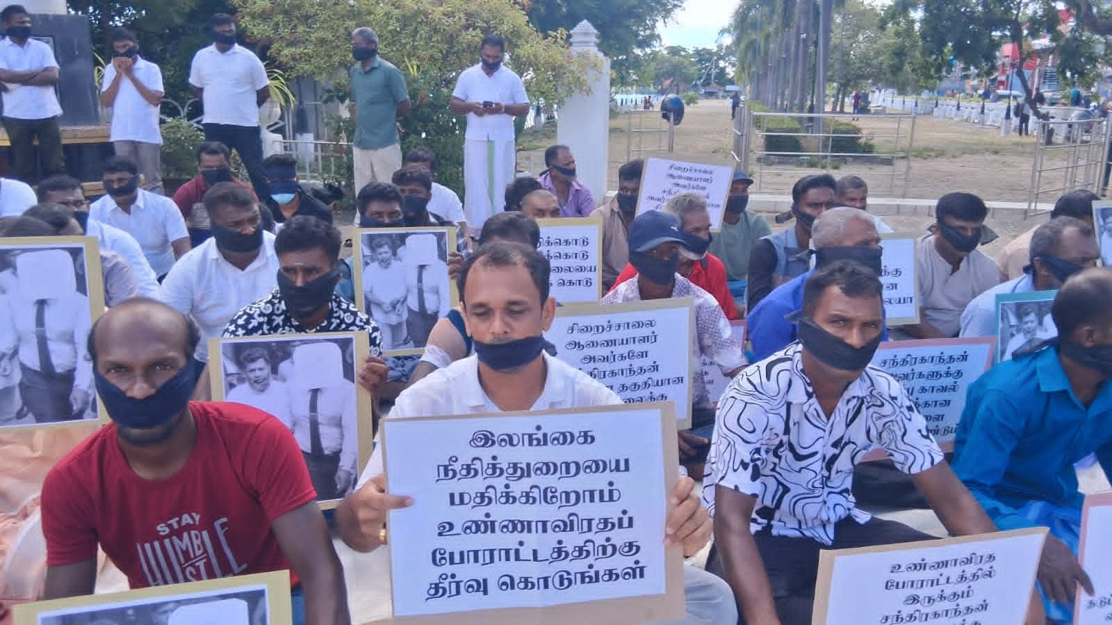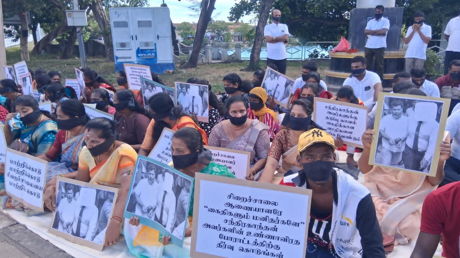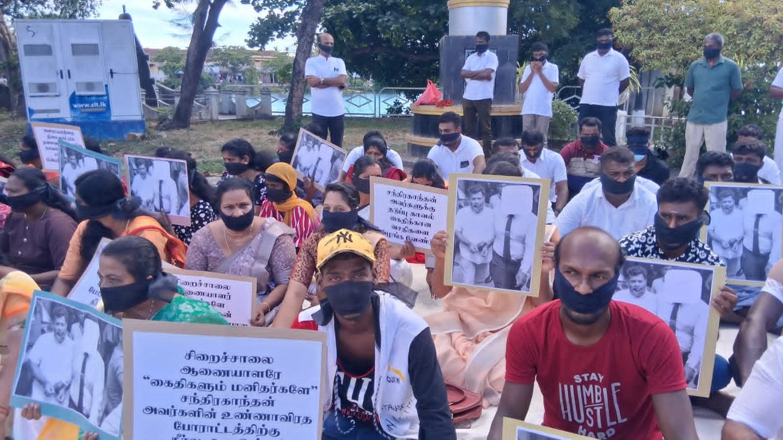 இன்று காலை மட்டக்களப்பு காந்தி பூங்கா முன்பாக நடைபெற்ற இந்த அமைதியான போராட்டத்தில், சிறைச்சாலை ஆணையாளர் சந்திரகாந்தனை தகுதியான சிறைச்சாலைக்கு மாற்ற வேண்டும், கைதிகளும் மனிதர்களே, அவரது உண்ணாவிரதப் போராட்டத்திற்கு தீர்வு வழங்க வேண்டும், தடுப்பு காவல் கைதிக்கான வசதிகளை வழங்க வேண்டும் எனக் கோரிய வாசகங்கள் அடங்கிய பதாகைகளை ஏந்தியவாறும் கருப்புப் பட்டி அணிந்தவாறும் ஆர்ப்பாட்டக்காரர்கள் அமர்ந்து சத்தியாகிரகத்தில் ஈடுபட்டனர்.