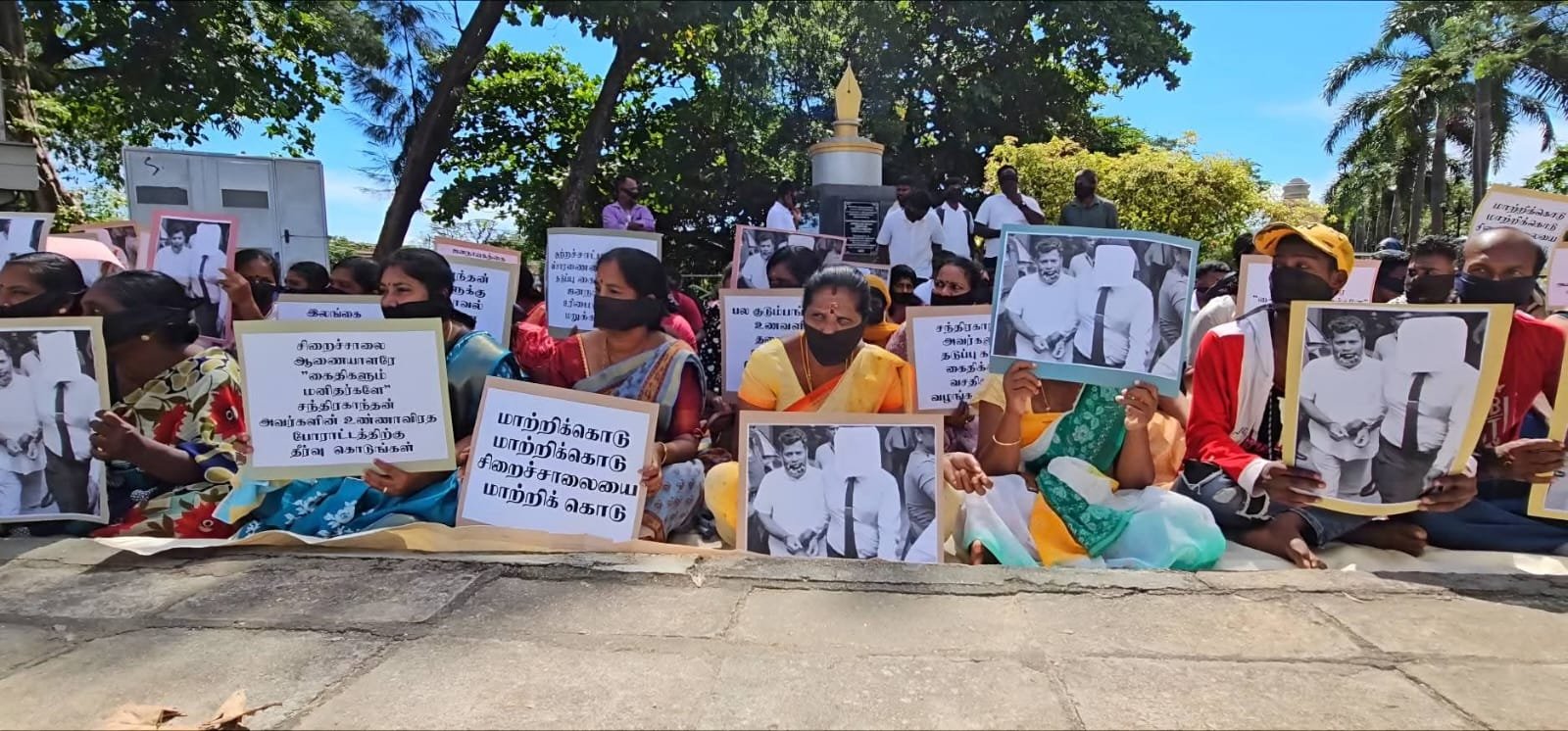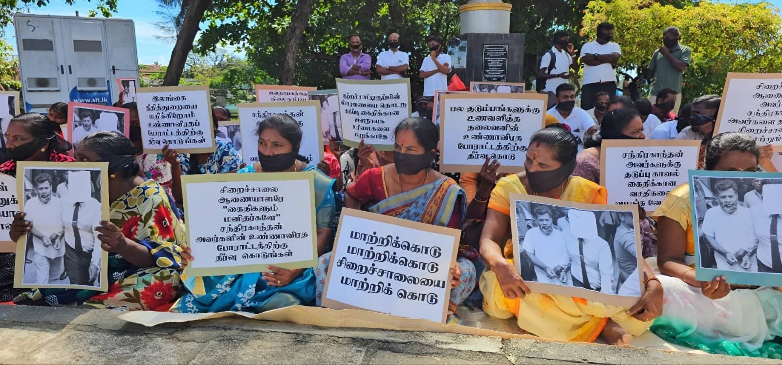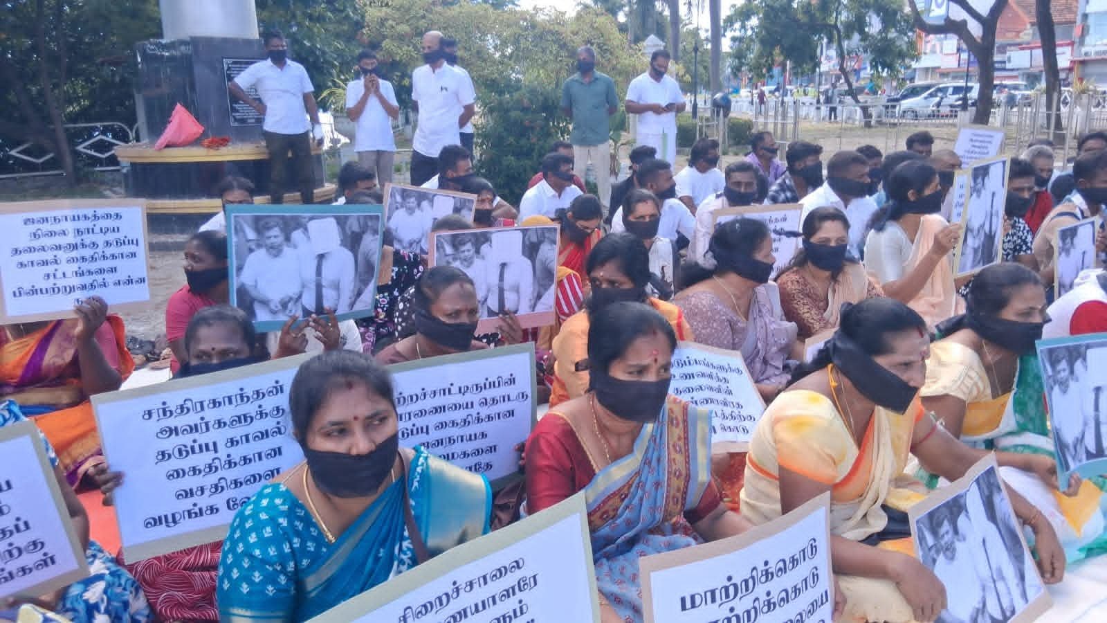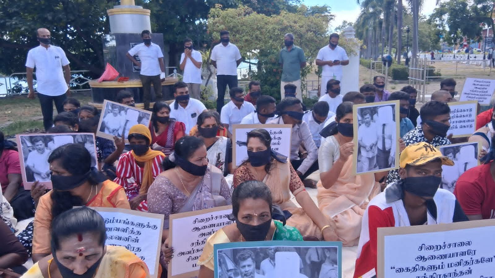இன்று காலை மட்டக்களப்பு காந்தி பூங்கா முன்பாக நடைபெற்ற இந்த அமைதியான போராட்டத்தில், சிறைச்சாலை ஆணையாளர் சந்திரகாந்தனை தகுதியான சிறைச்சாலைக்கு மாற்ற வேண்டும், கைதிகளும் மனிதர்களே, அவரது உண்ணாவிரதப் போராட்டத்திற்கு தீர்வு வழங்க வேண்டும், தடுப்பு காவல் கைதிக்கான வசதிகளை வழங்க வேண்டும் எனக் கோரிய வாசகங்கள் அடங்கிய பதாகைகளை ஏந்தியவாறும் கருப்புப் பட்டி அணிந்தவாறும் ஆர்ப்பாட்டக்காரர்கள் அமர்ந்து சத்தியாகிரகத்தில் ஈடுபட்டனர்.