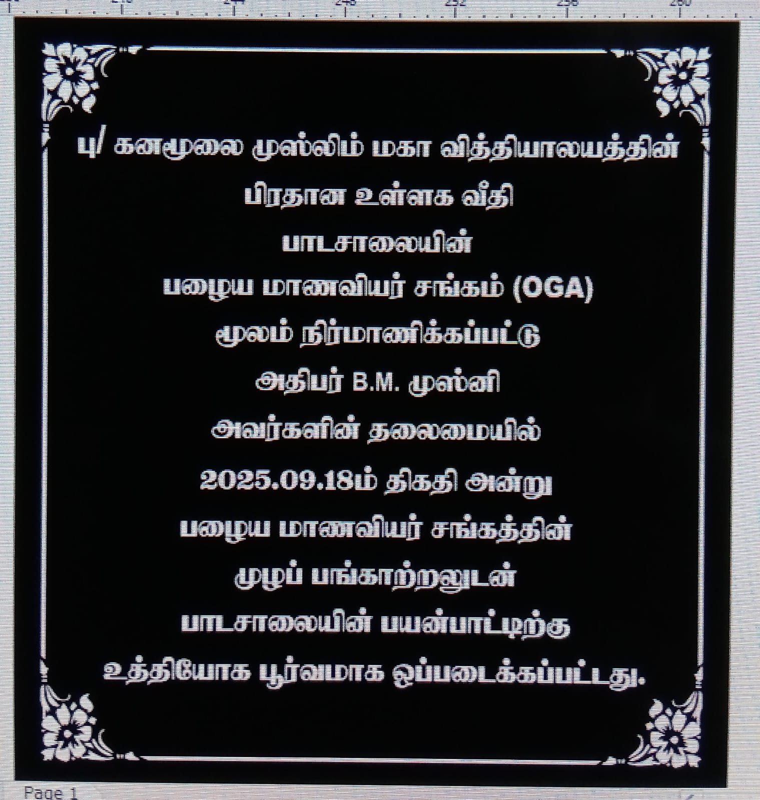 புத்தளம் தெற்கு கோட்டத்துக்குட்பட்ட கனமூலை முஸ்லிம் மகா வித்தியாலயத்தில் பழைய மாணவியர் சங்கத்தினரால் சுமார் ஐந்து இலட்சத்து ஐம்பது ஆயிரம் ரூபா (550,000/=) பெறுமதியில் நிர்மாணிக்கப்பட்ட பாடசாலையின் உள்ளக பிரதான வீதி அண்மையில் திறந்து வைக்கப்பட்டுள்ளது.