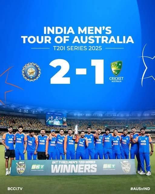 அவுஸ்திரேலிய அணிக்கு எதிரான கடைசி T20 ஆட்டம் மழை காரணமாக பாதியில் கைவிடப்பட்ட நிலையில், 5 ஆட்டங்கள் கொண்ட T20 கிரிக்கெட் தொடரை இந்திய அணி 2-1 என கைப்பற்றி கிண்ணத்தை வென்றது.