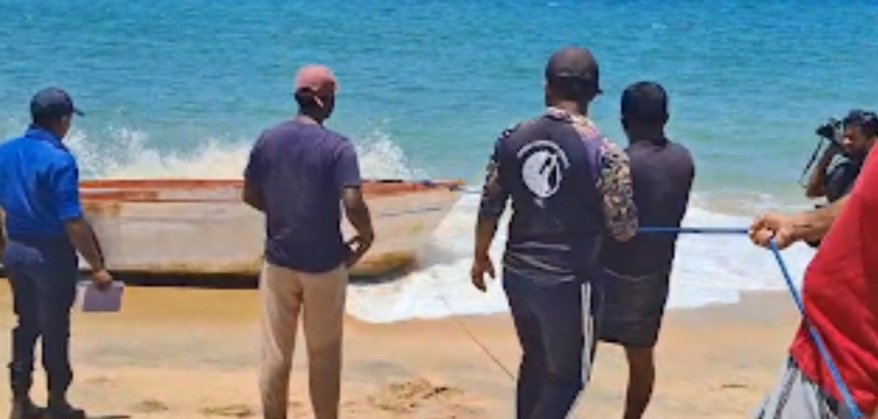 பொலிஸார், இராணுவத்தினர் மற்றும் கடற்படையினரின் உதவியுடன் கரைக்கு கொண்டு வரப்பட்ட இந்தப் படகு தற்போது பாதுகாப்பு அதிகாரிகளிடம் ஒப்படைக்கப்பட்டுள்ளதாக தெரிவிக்கப்படுகிறது.