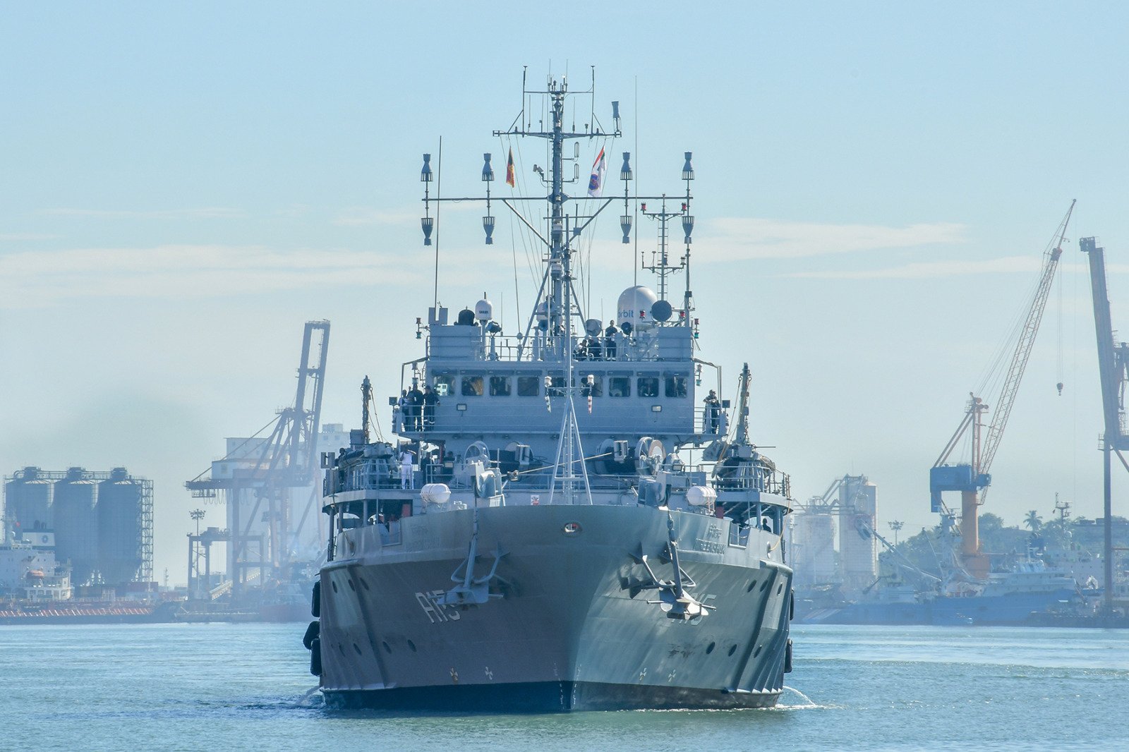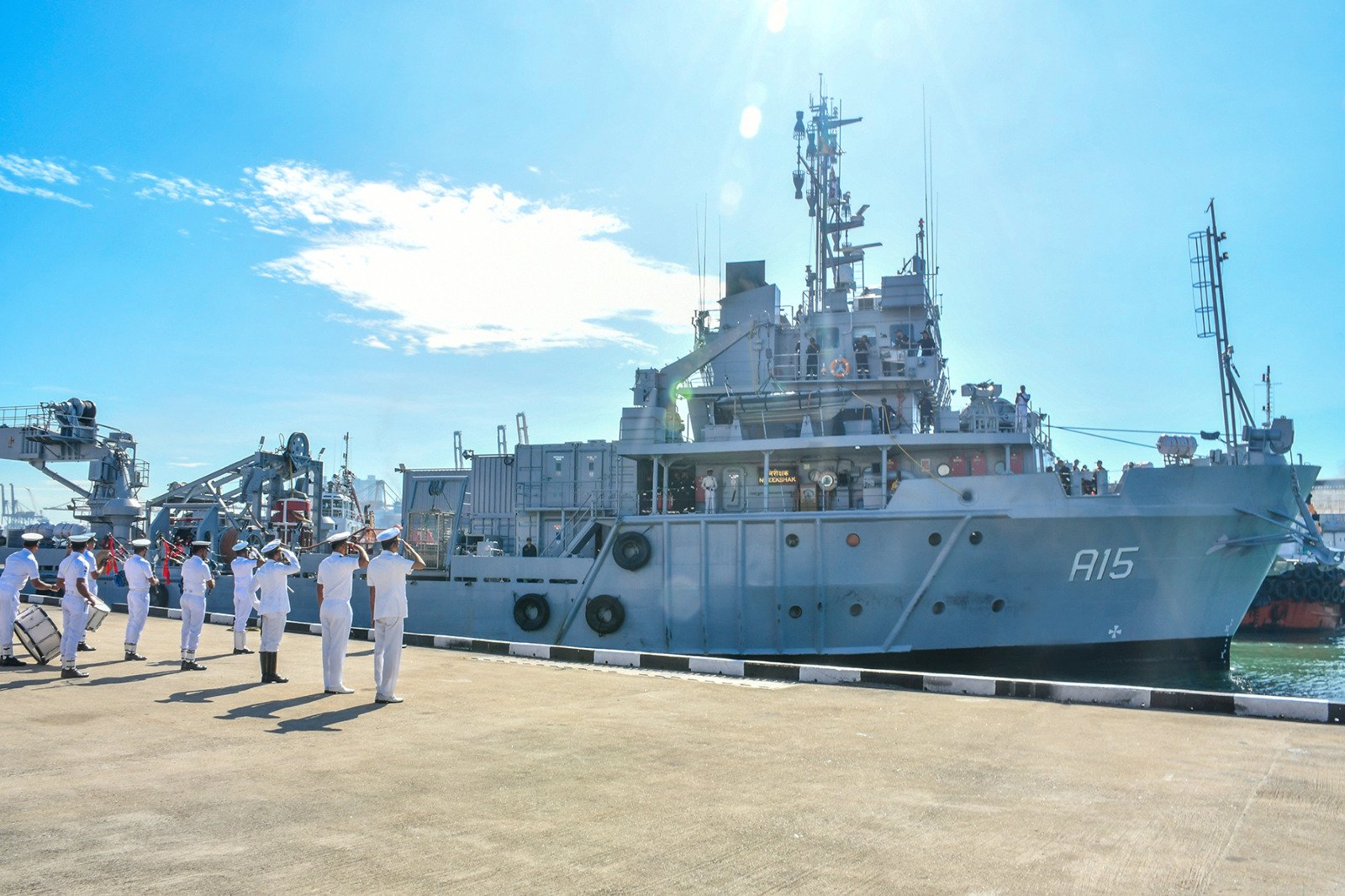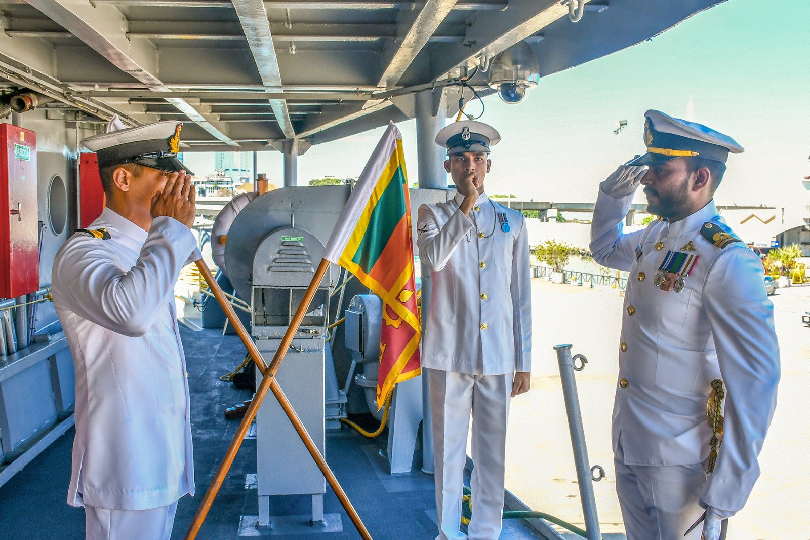 கொழும்பு துறைமுகத்தை வந்தடைந்த இந்த கப்பலை இலங்கை கடற்படையினர் கடற்படை மரபுகளின்படி வரவேற்றனர்.