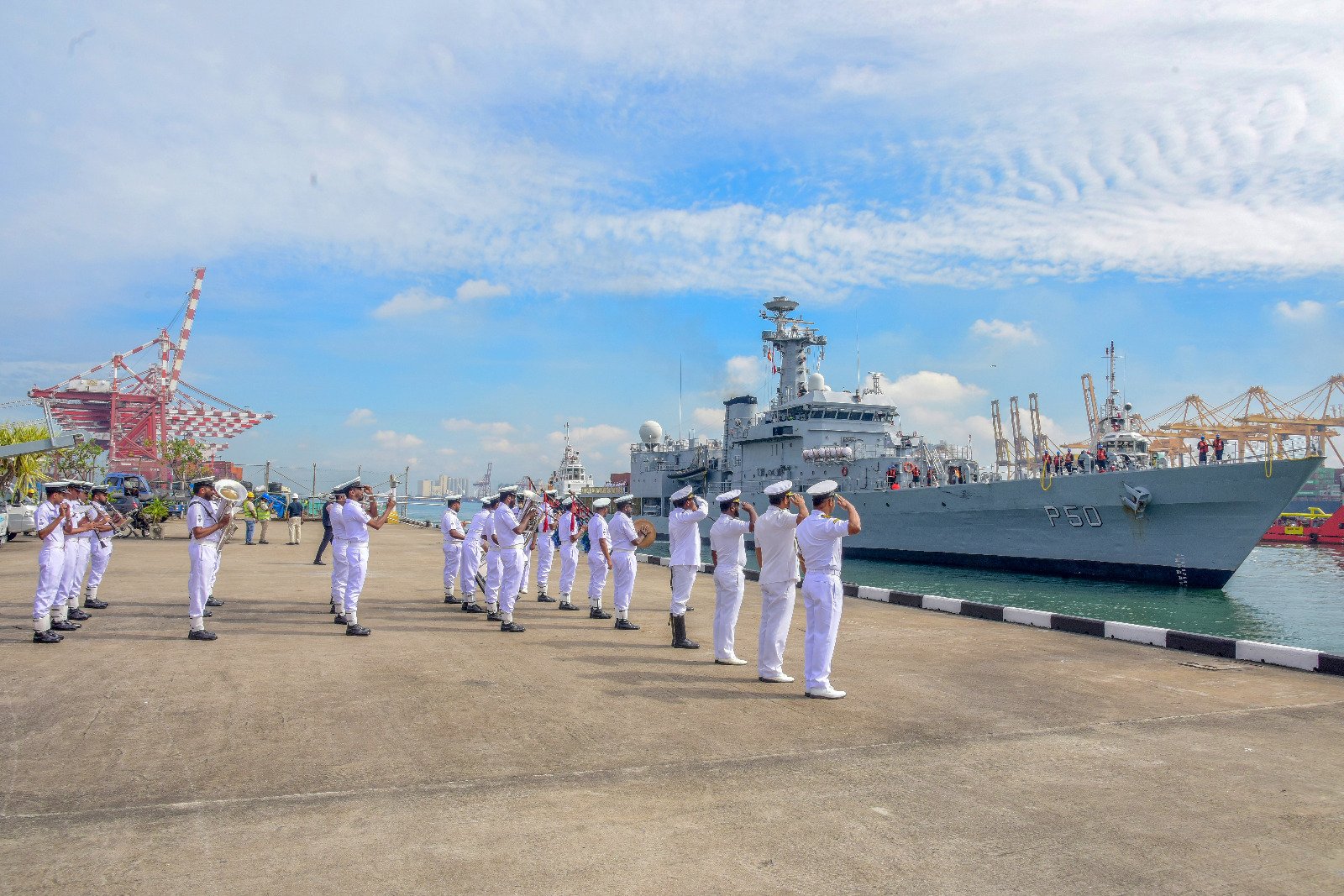 இந்திய கடற்படையின் போர் கப்பலான ‘INS SUKANYA’ செவ்வாய்க்கிழமை (18) உத்தியோகபூர்வ விஜயத்திற்காக தீவை வந்தடைந்ததுடன், கடற்படை மரபுகளின்படி இலங்கை கடற்படையினர் அக் கப்பலை கொழும்பு துறைமுகத்தில் வரவேற்றனர்.