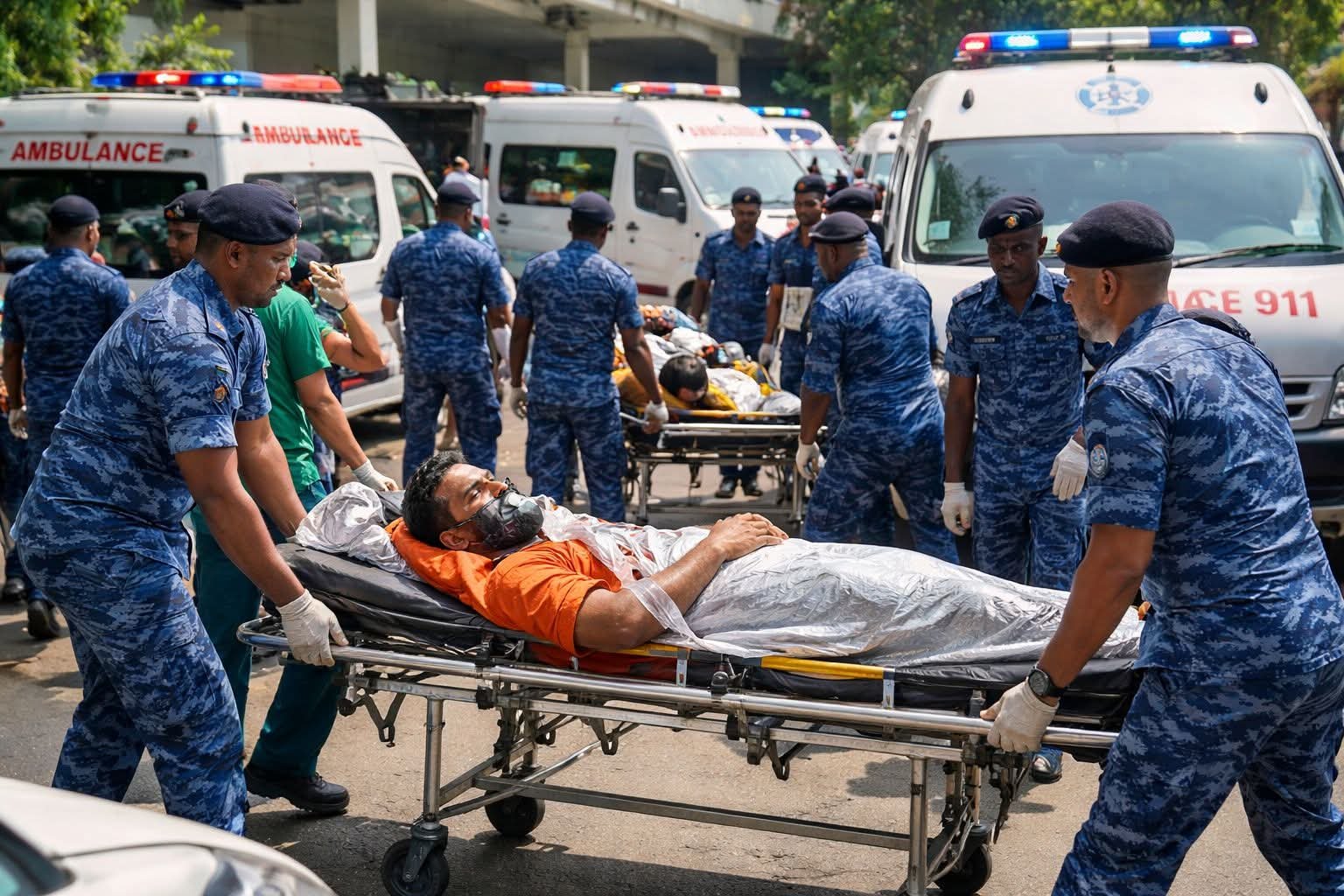 சம்பவத்தைத் தொடர்ந்து இலங்கையின் காலி கடற்பரப்பிற்கு அருகில் அவசர மீட்பு நடவடிக்கைகள் முன்னெடுக்கப்பட்டன.