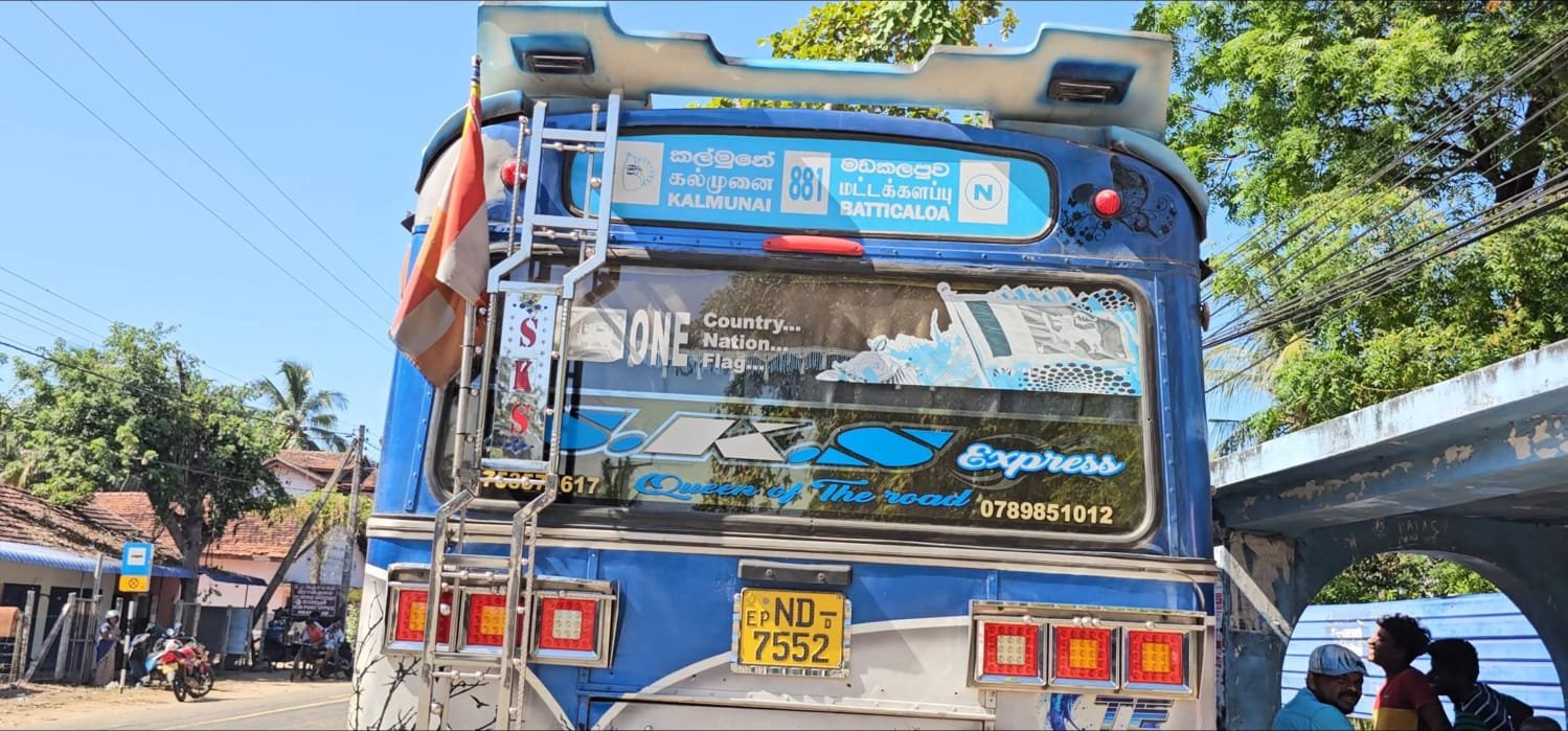 கதிர்காமம் சென்று திரும்பிய யாத்திரியகர்ளை ஆரையம்பதியில் இறக்கிவிட்டு திரும்பிய பேரூந்து கிரான்குளத்தில் விபத்தில் சிக்கியது