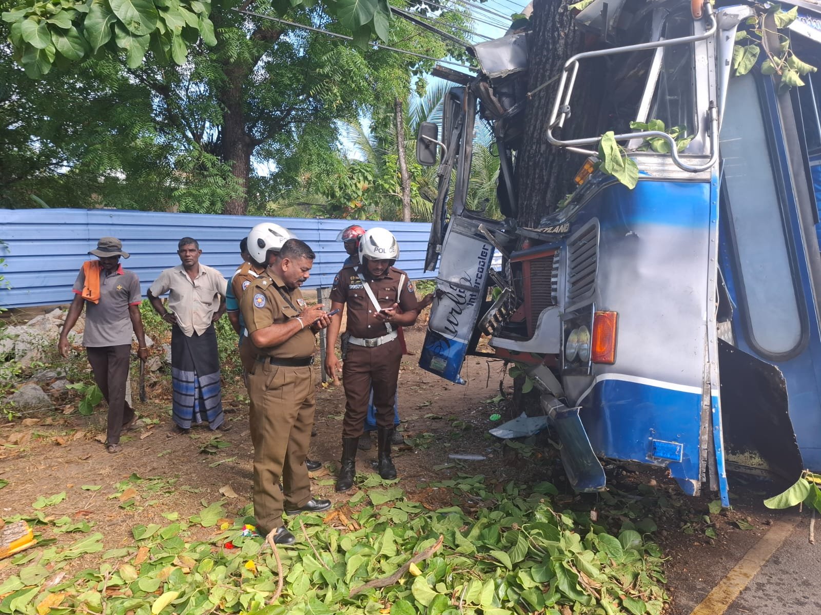 இந்த விபத்து இடம்பெறும் போது பேரூந்தில் பஸ் சாரதியும் உதவியாளர்கள் இருவரும் இருந்துள்ள நிலையில் மூவரும் காயமடைந்து வைத்தியசாலையில் அனுமதிக்கப்பட்டுள்ளனர். விபத்தில் காயமடைந்தோர் பாண்டிருப்பு களுதாவளை பகுதியை சேர்ந்தவர்களாகும். விபத்தில் பேரூந்து பாரிய சேதத்துக்குள்ளான நிலையில் வம்மி மரமும் முறிந்து வீதியில் விழுந்துள்ளது.