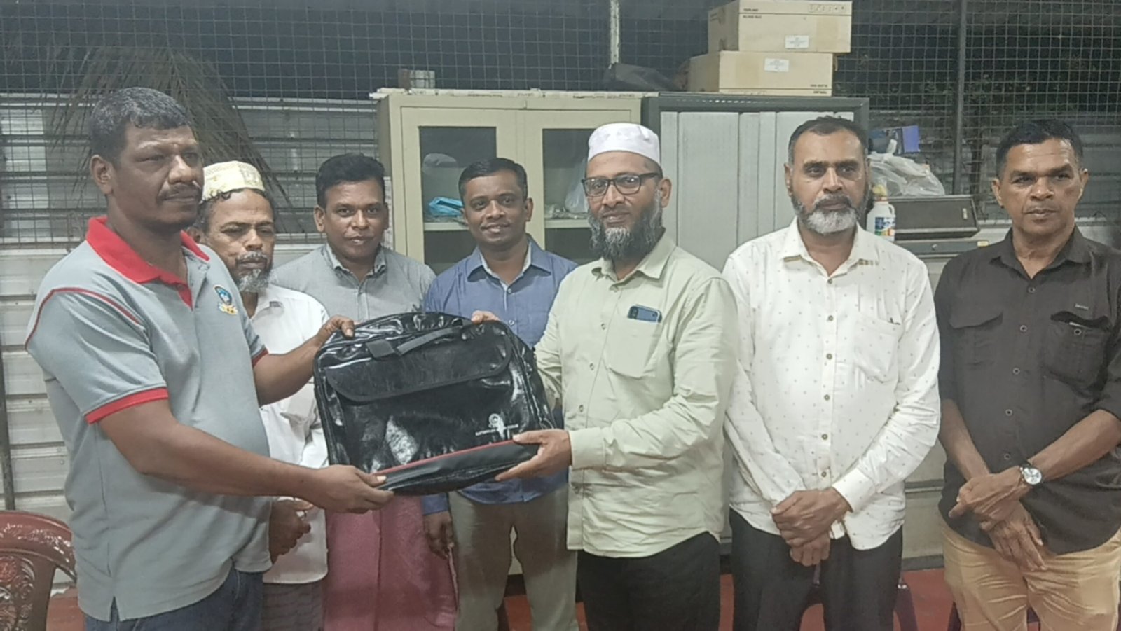 வெளிநாட்டில் வதியும் தனவந்தரின் அன்பளிப்பின் மூலம் கொள்வனவு செய்யப்பட்ட மடிக்கணணி பைகள் காத்தான்குடி மீடியா போரத்தின் உறுப்பினர்களுக்கு ஊடக கடமையினை செவ்வனே செய்வதற்காக வழங்கி வைக்கப்பட்டமை குறிப்பிடத்தக்கது.