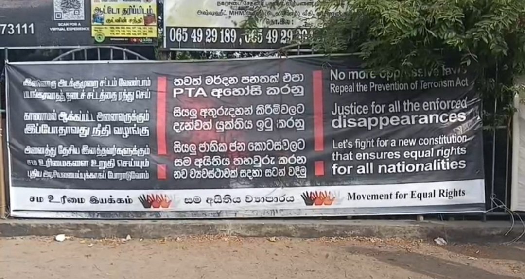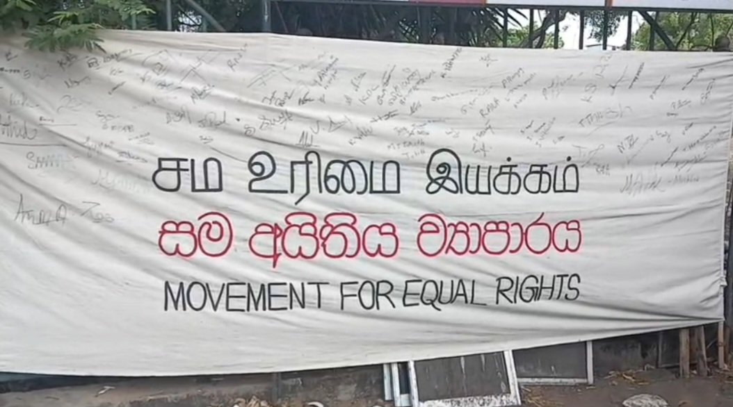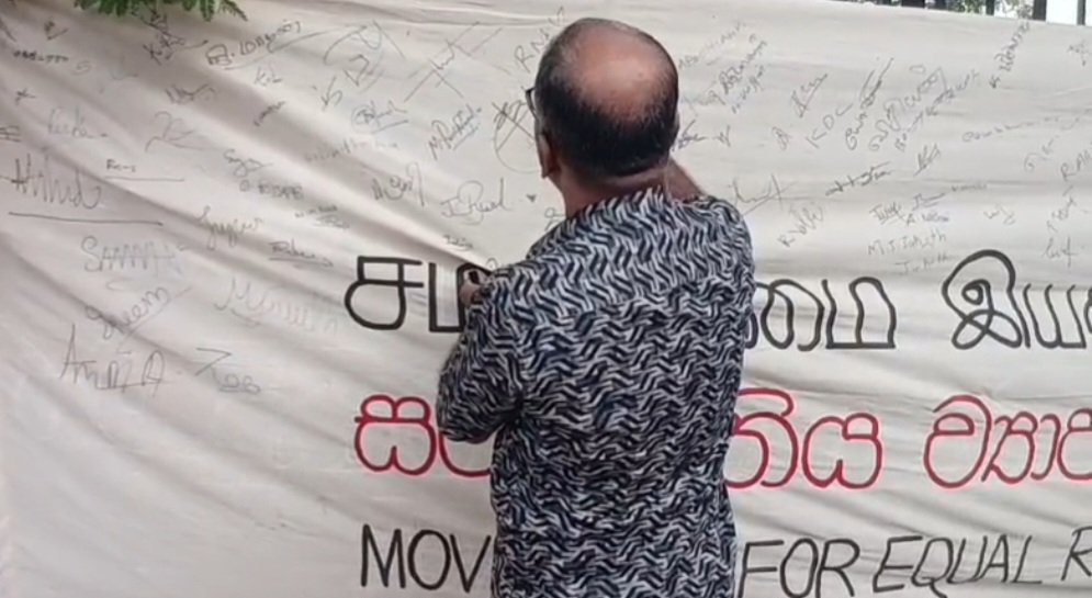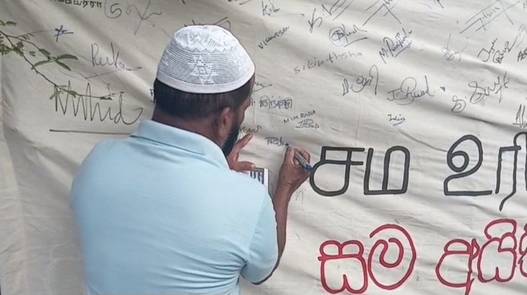 மாவட்ட இணைப்பாளர் க.கிருபாகரன் தலைமையில் இடம்பெற்ற எதிர்ப்பு பதாதையில் கையொப்பமிடும் போராட்டத்தில் சம உரிமை இயக்கத்தின் தேசிய அமைப்பாளர் தன்னே ஞானசார தேரர் மற்றும் சம உரிமை செயற்பாட்டாளர் ஏ.எல்.எம் சபீல் (நளீமி) மற்றும் பொது மக்கள் என பலரும் கலந்துகொண்டு எதிர்ப்பு பதாதையில் கையொப்பமிட்டதோடு, வீதியில் பயணித்தவர்களுக்கு துண்டு பிரசுரங்களும் விநியோகிக்கப்பட்டது.