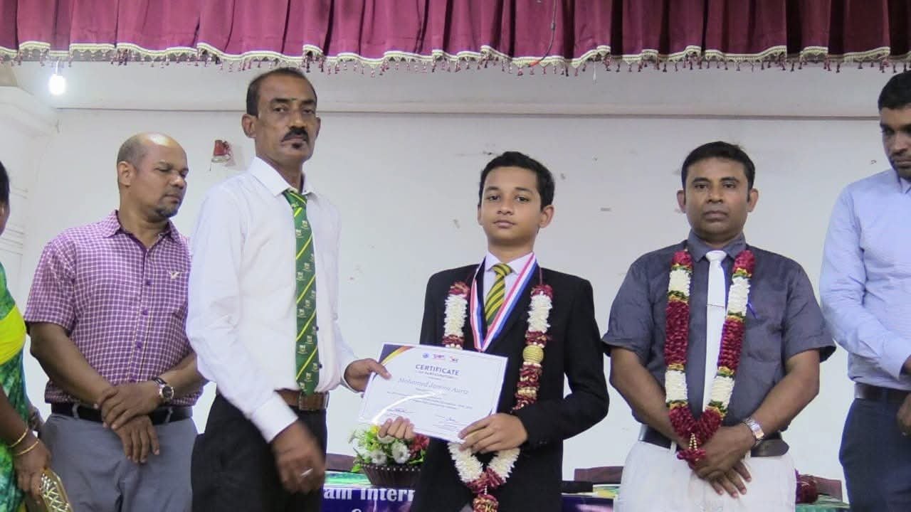 காத்தான்குடி மாணவன் முகம்மது ஜனூஸ் ஆரிஸ் சர்வதேச கணித ஒலிம்பியாடில் சாதனை – பாடசாலையில் சிறப்பு கௌரவிப்பு.!!!