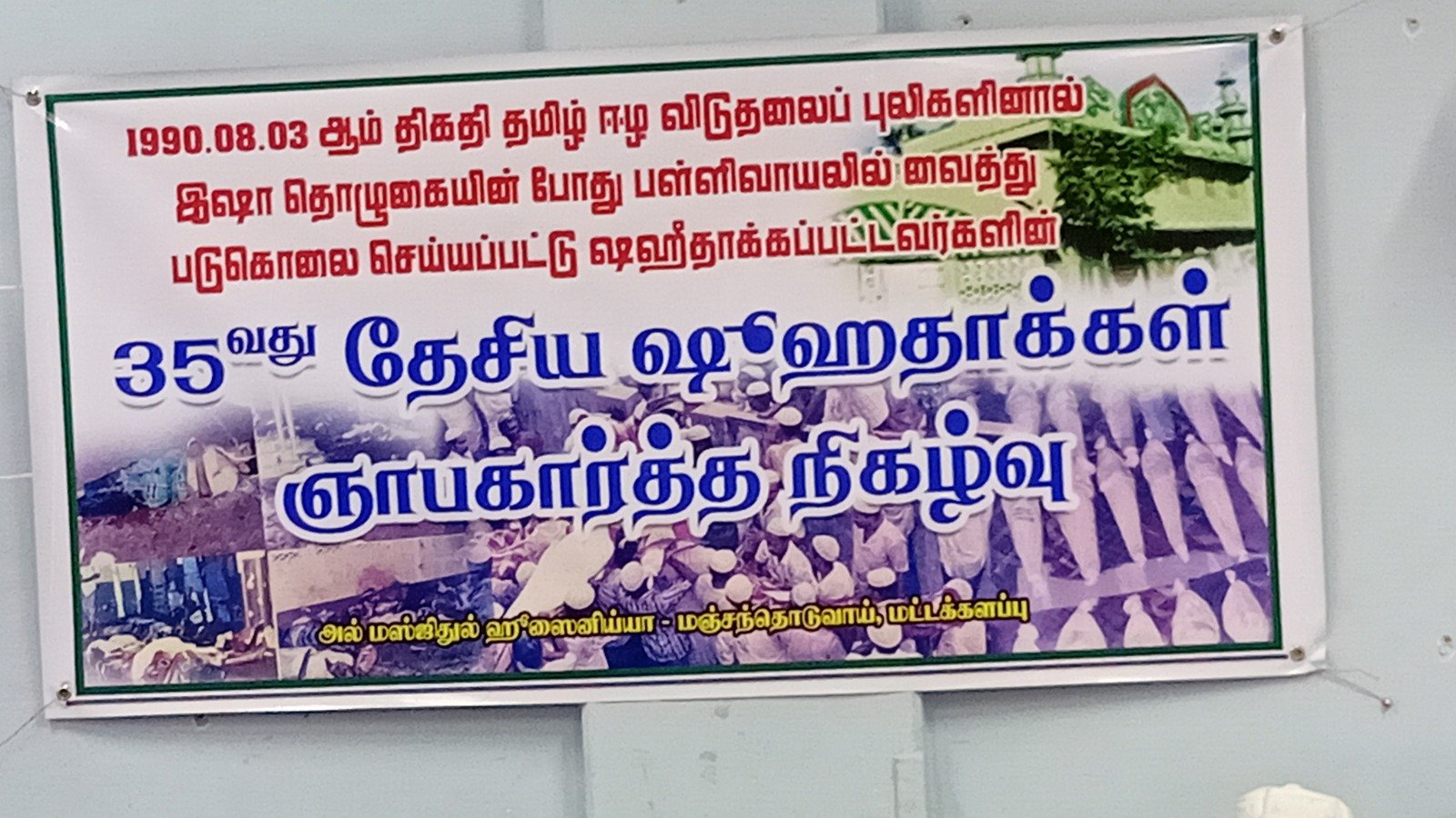 கடந்த 1990 ஆம் ஆண்டு ஆகஸ்ட் மாதம் மூன்றாம் திகதி காத்தான்குடி மீரா ஜும்பா பள்ளிவாயல், காத்தான்குடி ஹுசைனியா பள்ளிவாயல் ஆகிய இரு பள்ளிவாயல்களில் இரவு நேர தொழுகையில் ஈடுபட்டிருந்த 103 முஸ்லிம்கள் விடுதலைப் புலிகளினால் சுட்டுக் கொல்லப்பட்டு 268 முஸ்லிம்கள் படுகாயப்படுத்தப்பட்ட சம்பவத்தின் 33 ஆவது நினைவு வருட நினைவு தினம் இன்று ஆகும். இதனை ஒட்டியே இன்றைய தினத்தை காத்தான்குடி மக்கள் துக்கதினமாகவும் அனுஷ்டித்து வருகின்றனர்.