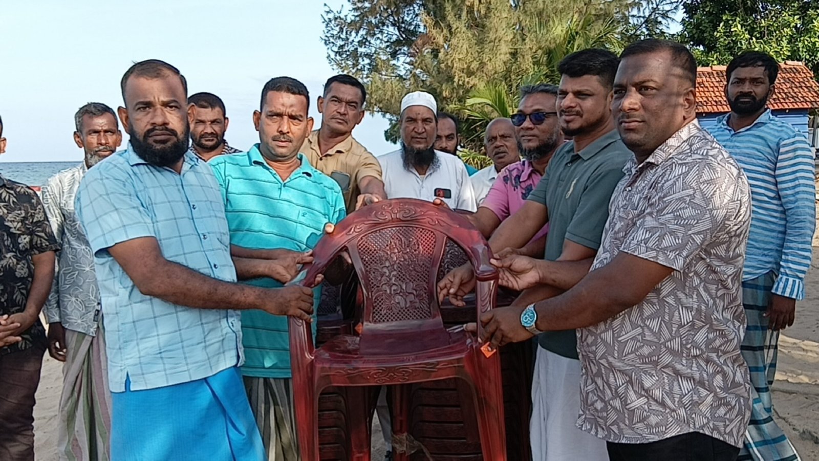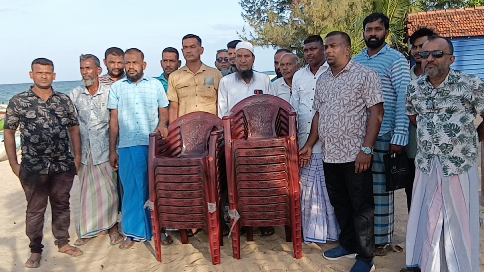குறித்த மீனவர் அமைப்பின் செயலாளர் அஸ்மி தலைமையில் இன்று (06) ஏத்துக்கால் கடற்கரை முன்றலில் இடம்பெற்ற நிகழ்வில் தனது இரு மாத சம்பளங்களுக்கும் கொள்வனவு செய்யப்பட்ட கதிரைகள் குறித்த மீனரவைப்புக்கு கையளிக்கப்பட்டது.
