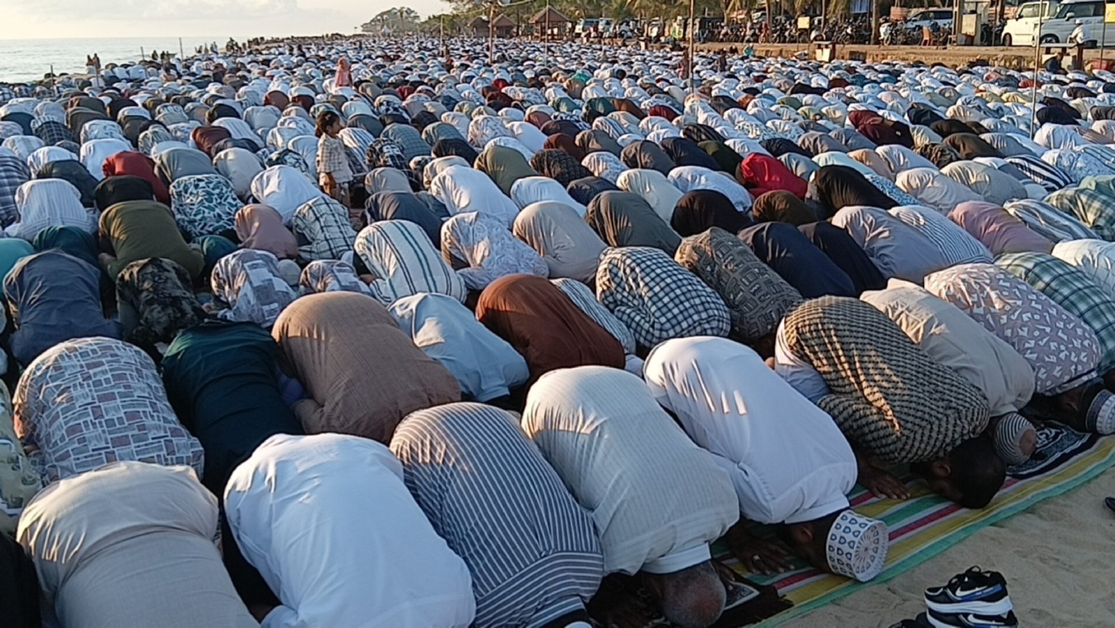 காத்தான்குடி கடற்கரையில் இடம்பெற்ற பெருநாள் தொழுகையில்: பெருமளவிலான மக்கள் பங்கேற்பு.!!!
