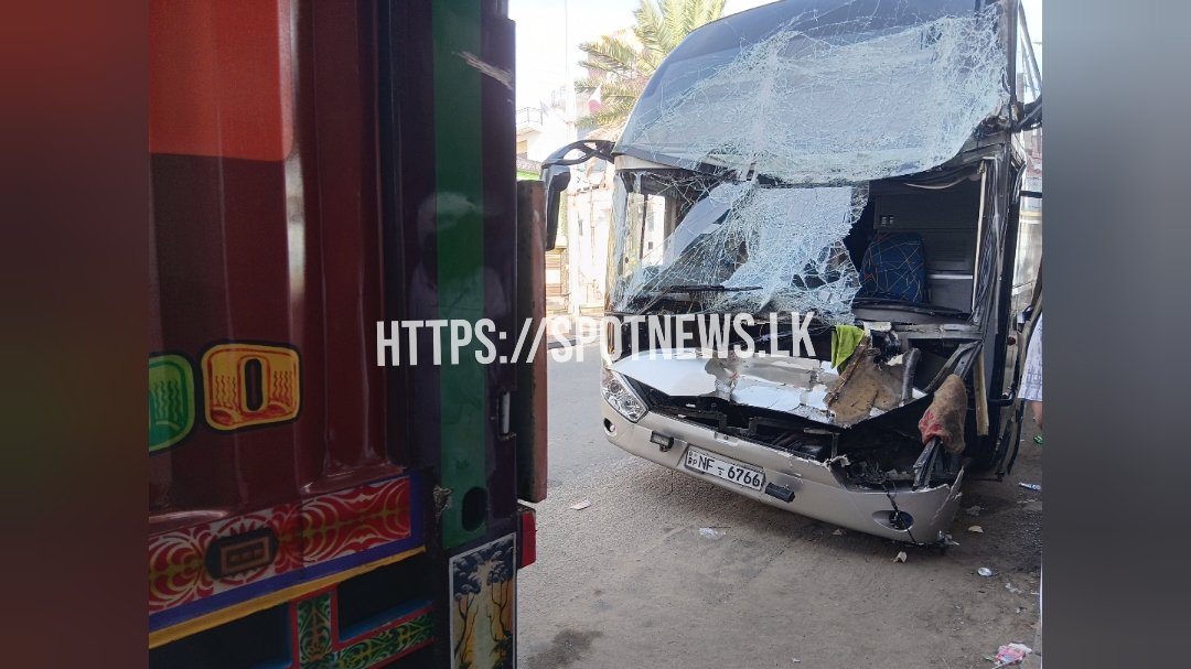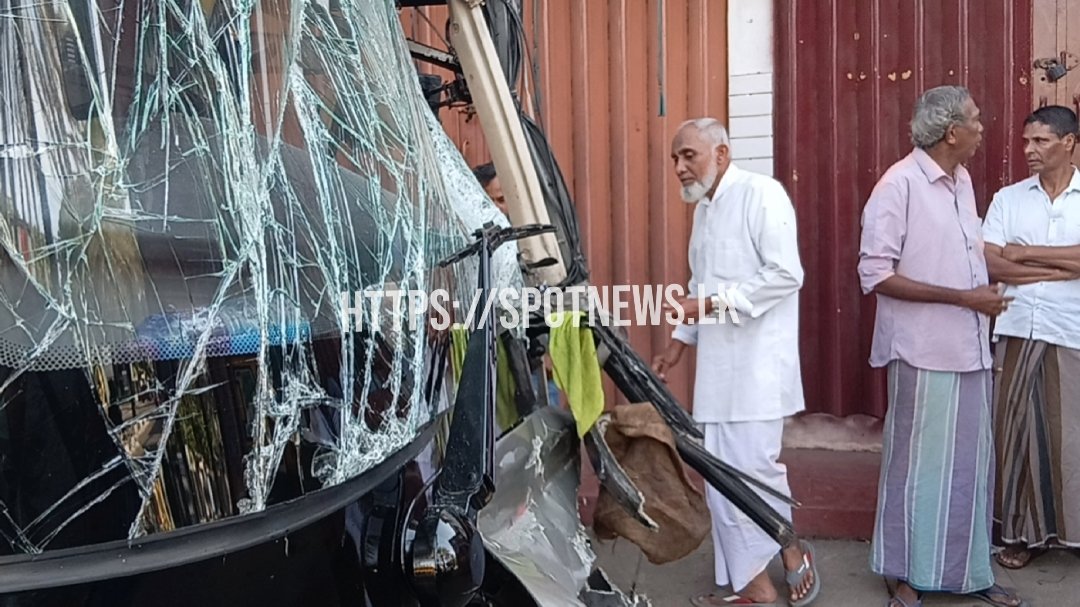இன்று அதிகாலை 4 மணியளவில் கொழும்பிலிருந்து கல்முனை நோக்கி வந்து கொண்டிருந்த லொரியொன்று காத்தான்குடி பிரதான வீதியில் நிறுத்தப்பட்டிருந்த அதே நேரம், கொழும்பிலிருந்து அக்கரைப்பற்று நோக்கி வந்து கொண்டிருந்த சொகுசு பஸ் ஒன்று குறித்த லொரியின் பின்னால் மோதியதன் காரணமாக பாரிய விபத்து சம்பவம் ஏற்பட்டுள்ளது.