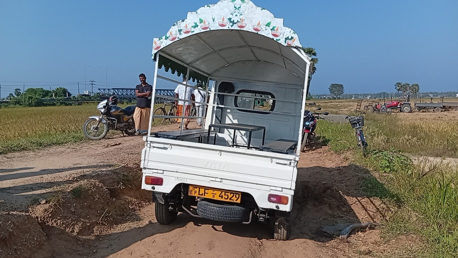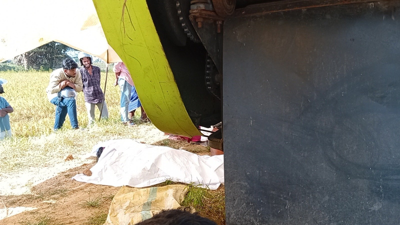 அறுவடை இயந்திரத்தை ஏற்றி உழவு இயந்திரத்தை செலுத்தி வந்த சாரதியின் சடலம் காரைதீவு பொலிஸாரினால் மீட்கப்பட்டுள்ளது.