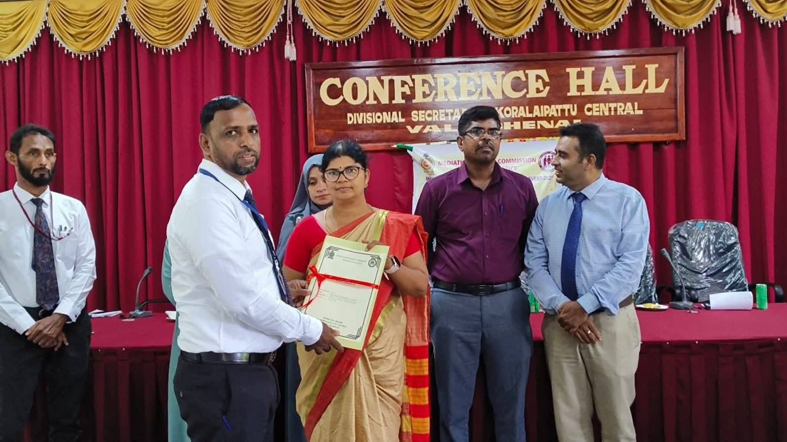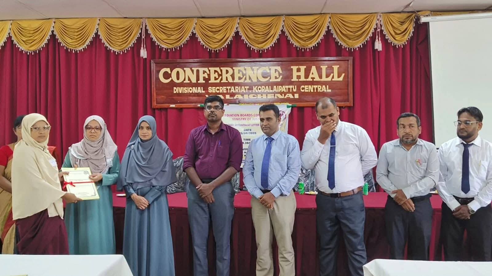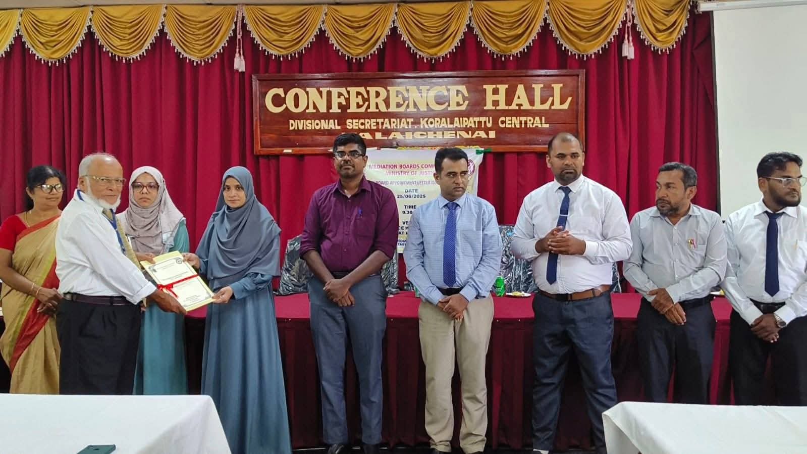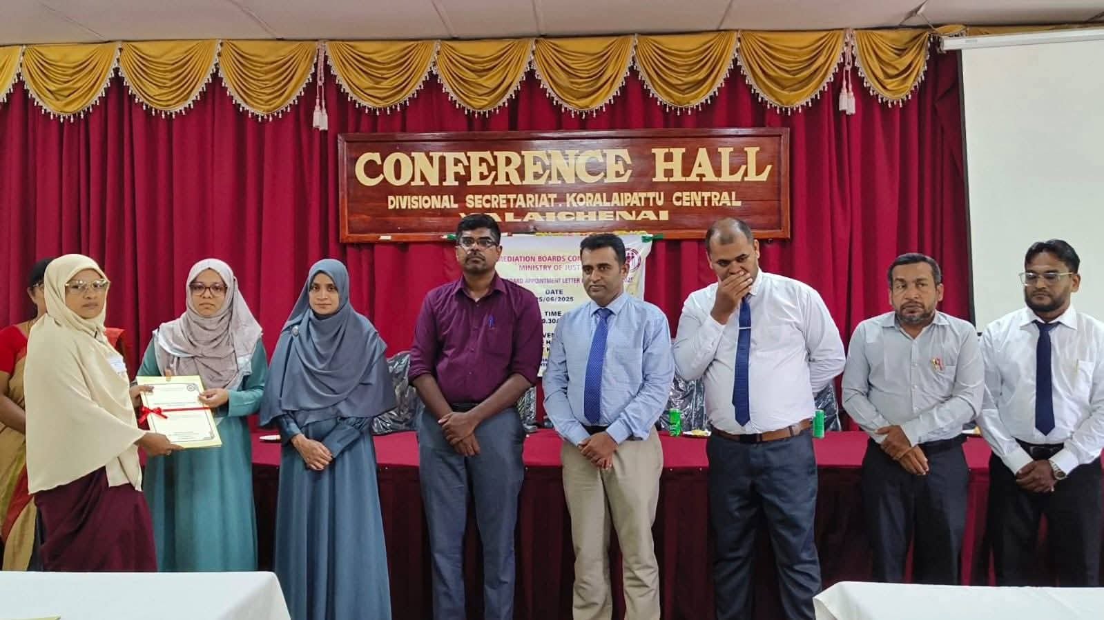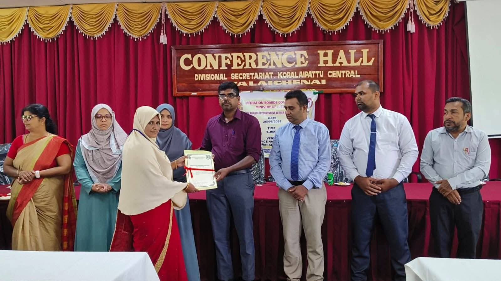கோறளைப்பற்று மத்தி, வாழைச்சேனை பிரதேச செயலகப்பிரிவின் மத்தியஸ்த சபைக்காக புதிதாக தெரிவு செய்யப்பட்ட 21 உறுப்பினர்களுல் தவிசாளர், பிரதித்தவிசாளர் மற்றும் ஏனைய உறுப்பினர்களுக்கான நியமனக்கடிதங்கள் வழங்கும் நிகழ்வு இன்று 2025/06/25ம் திகதி புதன்கிழமை 9.30 மணிக்கு செயலகத்தின் மாநாட்டு மண்டபத்தில் இடம்பெற்றது.