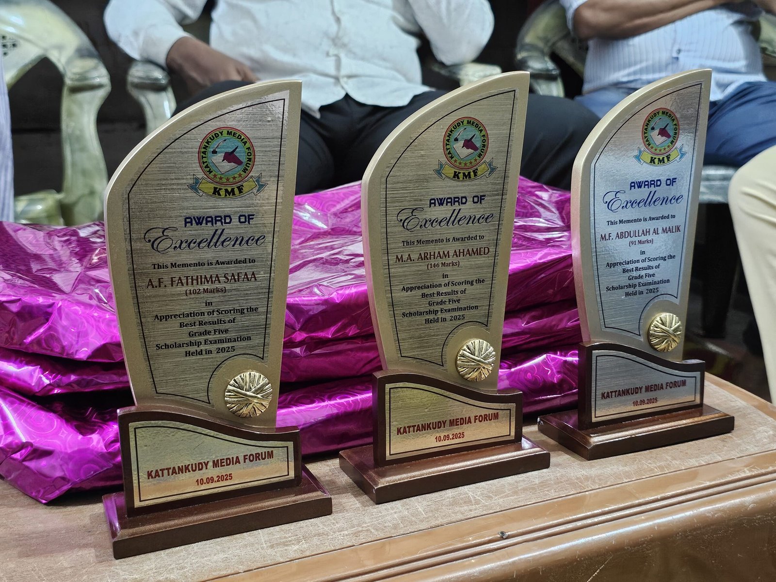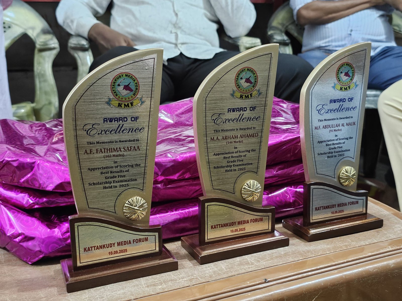 மொஹம்மட் அஸீம் அர்ஹம் அஹமட், பாரிஸ் பாத்திமா ஸபா ஆகியோருக்கு நினைவுச் சின்னங்கள் மற்றும் பரிசுப் பொருட்கள் வழங்கி கெளரவிக்கப்பட்டனர்.