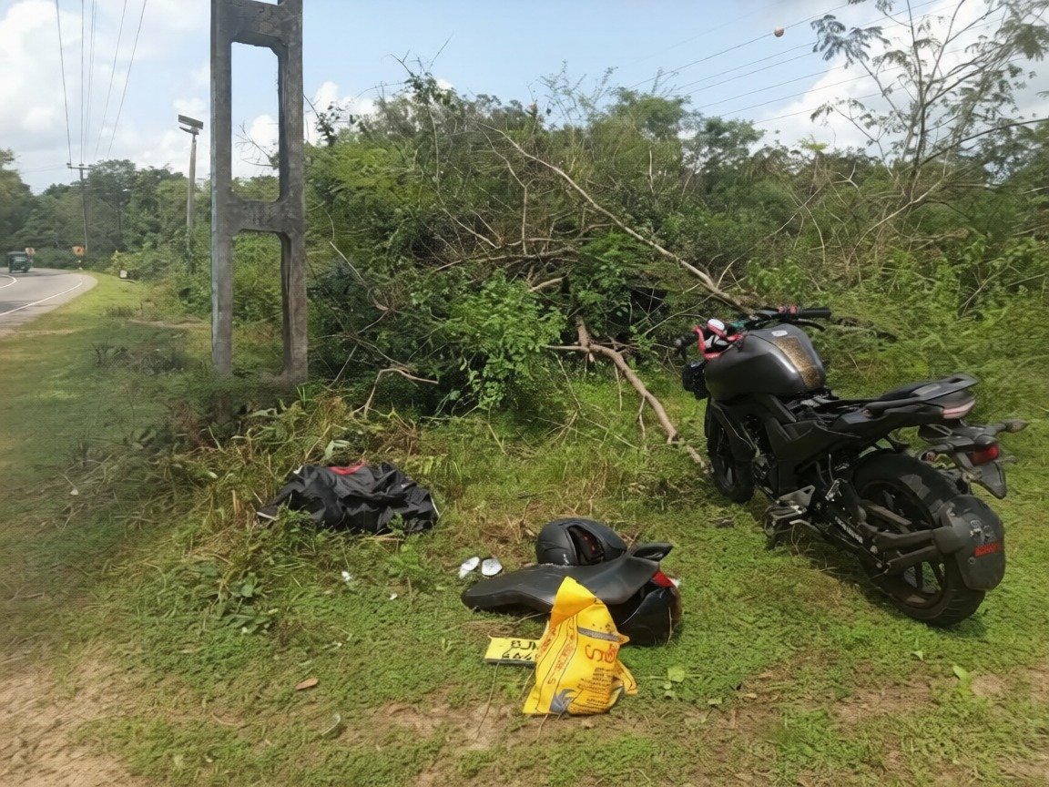 உயர் மின்னழுத்த மின்கம்பத்தில் மோட்டார் சைக்கிள் மோதியதில் இராணுவ வீரர் உயிரிழந்தார்.