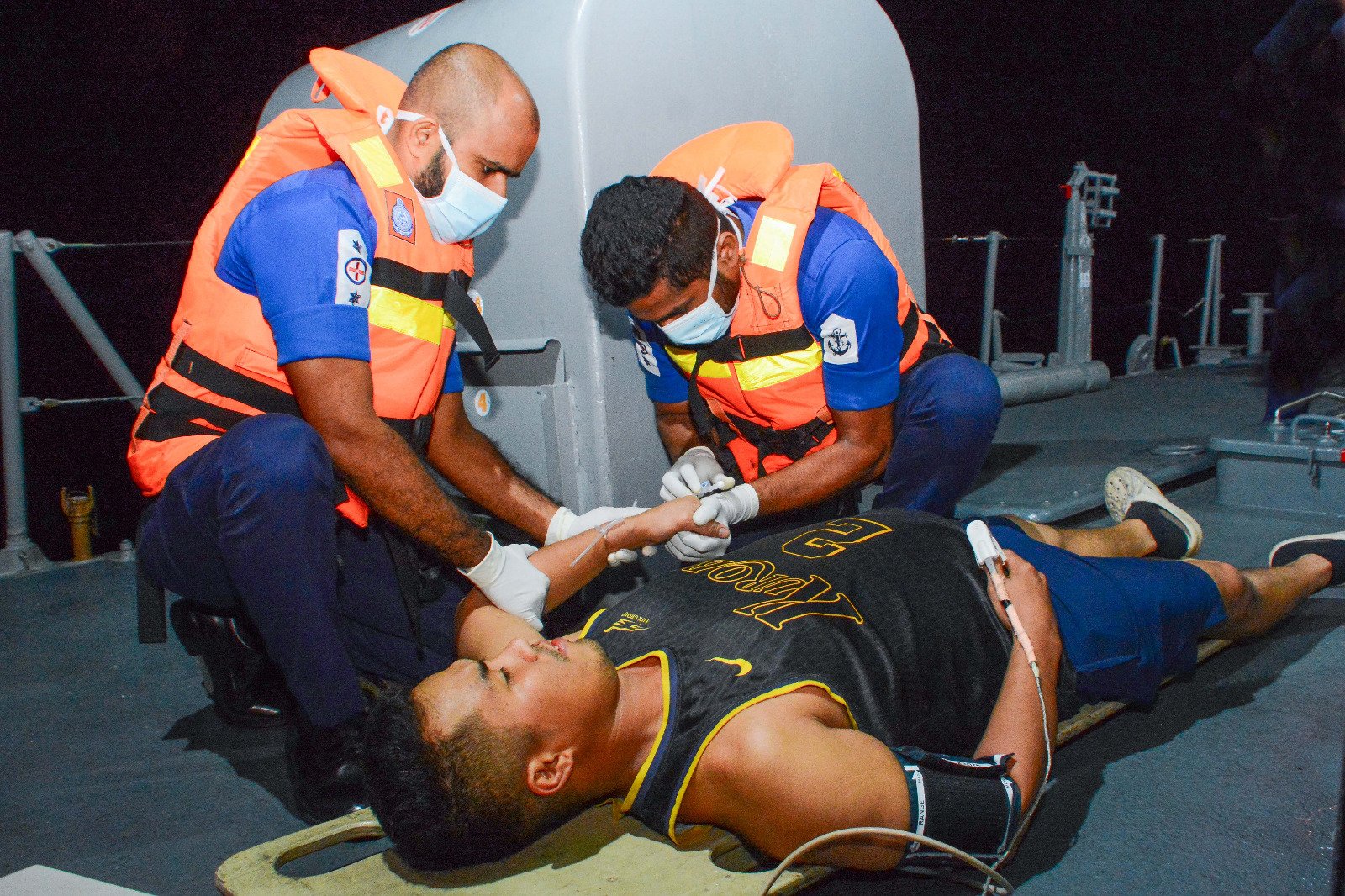 அதன்படி, கடற்படைக் கப்பலில் படுகாயமடைந்த பிலிப்பைன்ஸ் நோயாளியைப் பெற்ற பிறகு, அவர் உடனடியாக திருகோணமலை துறைமுகத்திற்கு அடிப்படை முதலுதவி சிகிச்சையுடன் கொண்டு வரப்பட்டு, பின்னர் மேலதிக சிகிச்சைக்காக திருகோணமலை பொது மருத்துவமனைக்கு அனுப்பி வைக்கப்பட்டார்.