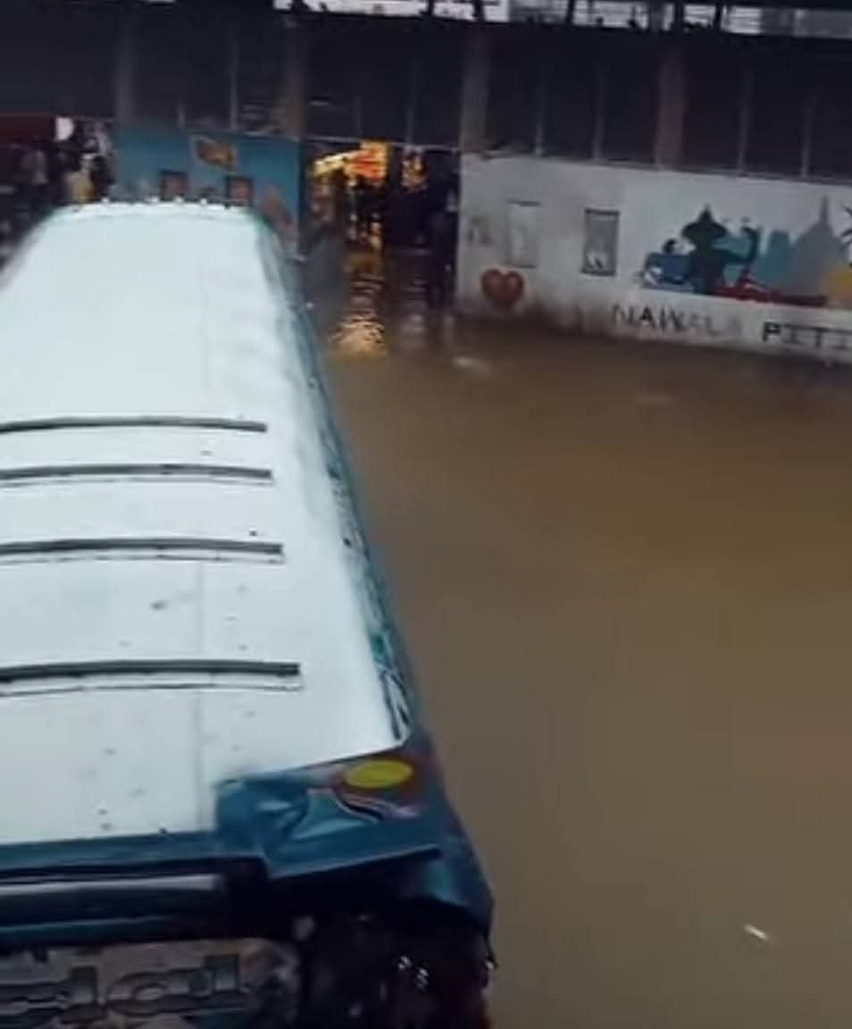 இதன் காரணமாக பேருந்து நிலையப் பகுதியில் உள்ள சில வர்த்தக நிலையங்களுக்குள் மழைநீர் புகுந்ததாக தெரிவிக்கப்படுகிறது.
