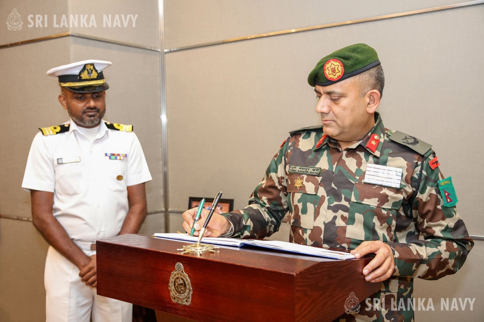 விஜயத்தின் போது, பிரிகேடியர் ஜெனரல் பூர்ம பகதூர் கட்ரி மற்றும் இலங்கை கடற்படையின் தலைமை அதிகாரியான ரியர் அட்மிரல் டேமியன் பெர்னாண்டோ ஆகியோருக்கிடையில் உத்தியோகபூர்வ சந்திப்பு ஒன்று நடைபெற்றது. இதில், இருதரப்புக்கும் முக்கியத்துவம் வாய்ந்த பாதுகாப்பு மற்றும் பயிற்சி சார்ந்த விடயங்கள் குறித்து சுமுகமான கலந்துரையாடல் இடம்பெற்றது.