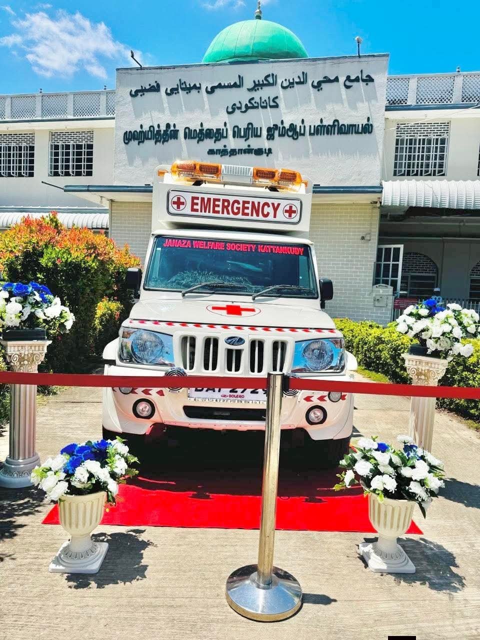 காத்தான்குடி ஜனாஸா நலன்புரி அமைப்பிற்கு, வெளிநாடுகளில் வாழும் காத்தான்குடி சமூகத்தினரால் அன்பளிப்பாக வழங்கப்பட்ட ஜனாஸா மற்றும் பாரிய நோயாளிகளை ஏற்றிச் செல்லும் சேவை வாகனம் இன்று (03) வெள்ளிக்கிழமை ஜும்ஆ தொழுகையைத் தொடர்ந்து உத்தியோகபூர்வமாக கையளிக்கப்பட்டது.