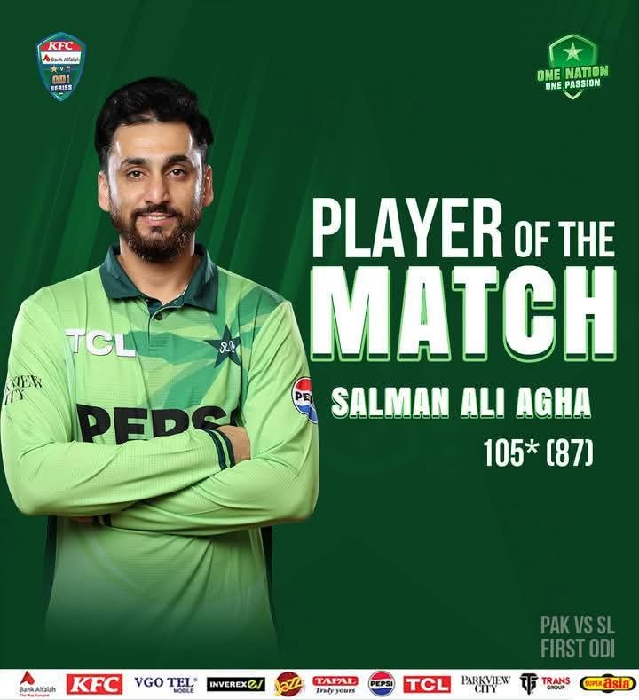 அந்த அணிக்காக சல்மான் ஆகா அதிரடியாக ஆட்டமிழக்காமல் 105 ஓட்டங்களை பெற்றார். ஹுசைன் தலாத் 62 ஓட்டங்களையும், மொஹமட் நவாஸ் ஆட்டமிழக்காமல் 36 ஓட்டங்களையும் பெற்றுக் கொண்டனர்.