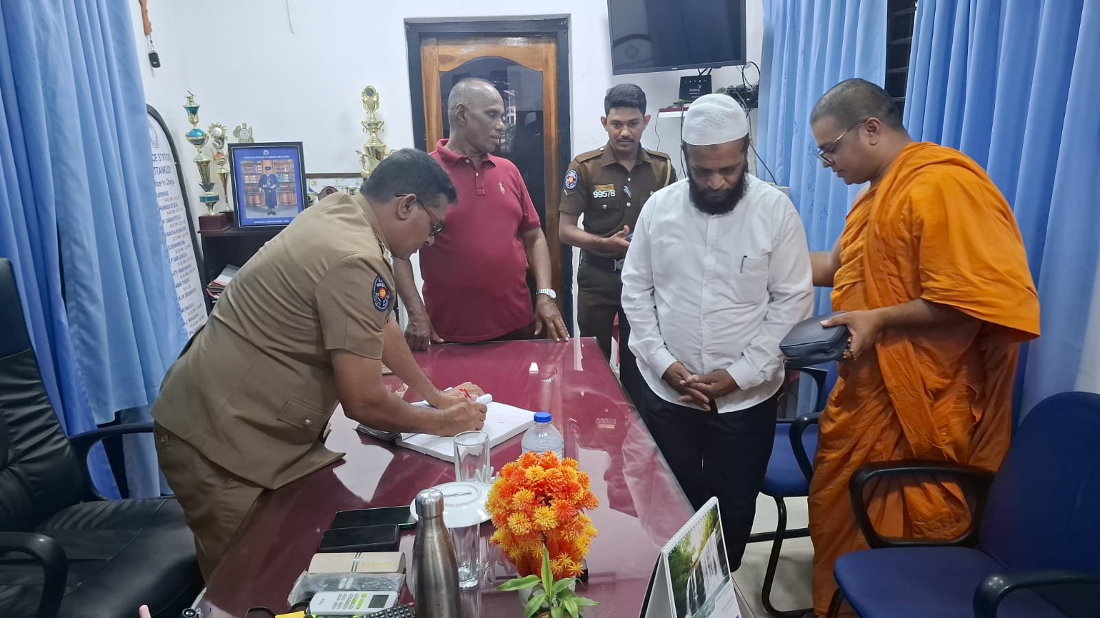 பொலிஸ் சார்ஜன்ட் ஒருவருக்கு மன்னிப்பு வழங்கிய பௌத்த தேரர்; காத்தான்குடியில் சம்பவம்.!!!